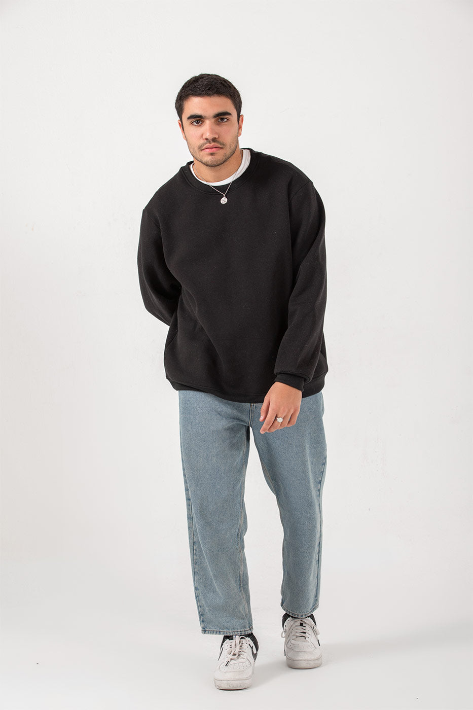 Crew Neck Hoodie In Black - L-XL