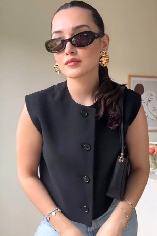 Cropped Basic Vest In Black