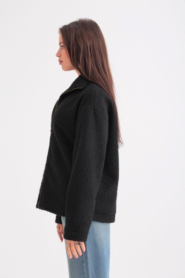 Fleece Oversized Black Jacket