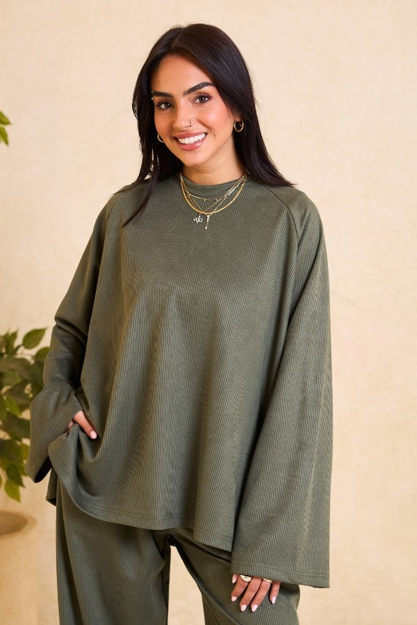 Oversized Ribbed Olive Green Set
