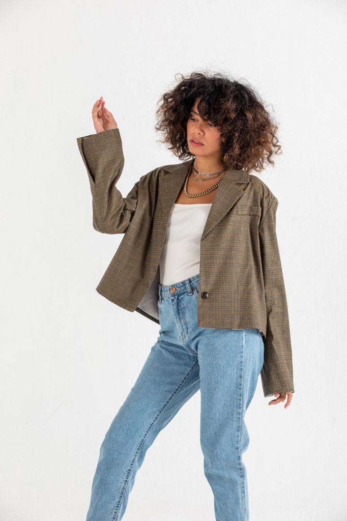 A blazer that goes smoothly with your smart and casual outfits ! This relaxed blazer features a notch lapel, one-button closure and shoulder pads. Team it with your basic top and high rise jeans then put your boots on and you are ready to go!Size Details