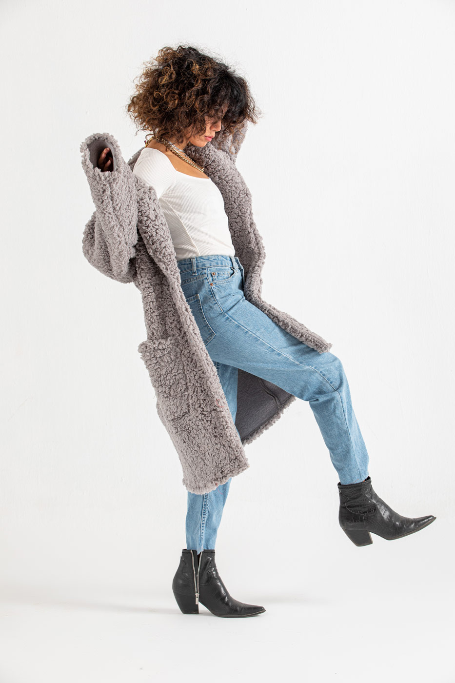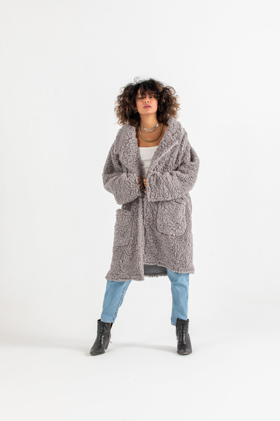 Go with this fur jacket to stay warm in style this winter ! The over sized jacket features a plain design, notch lapels and side functional pockets to stash your cell phone and favorite lipstick. Throw it on your outfit and you are ready to go!Size Details