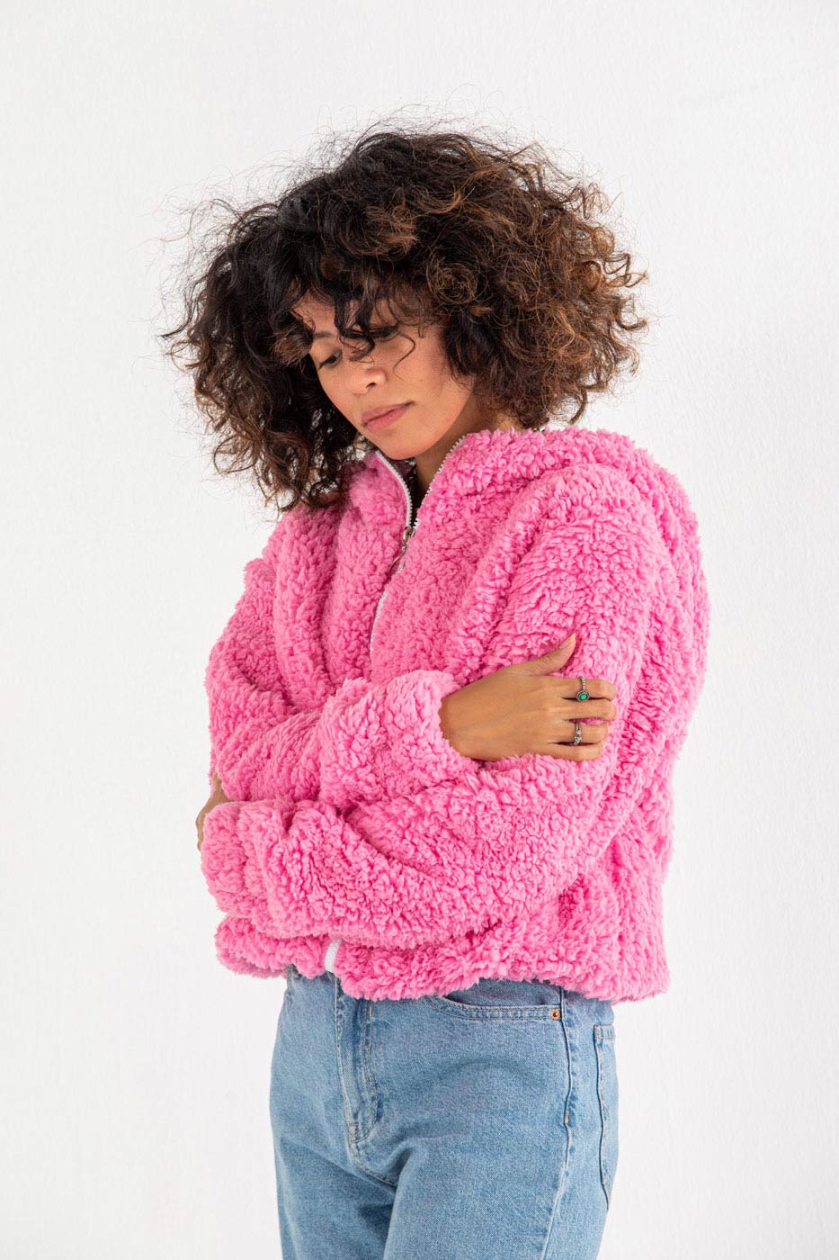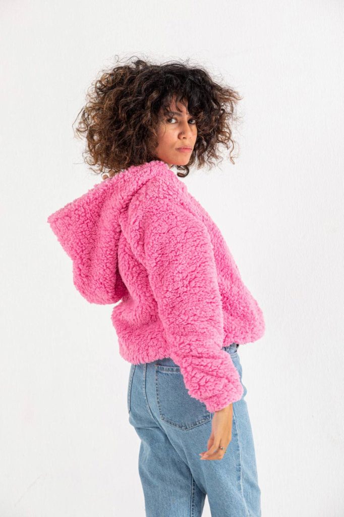 Save the nature and go with this fluffy faux teddy hoodie.The hoodie features an overall plain design, front zip, hoodie, and a high low hem. Style it with your denim of choice and favorite trainers to be just on point !Size Details