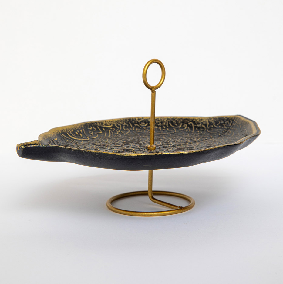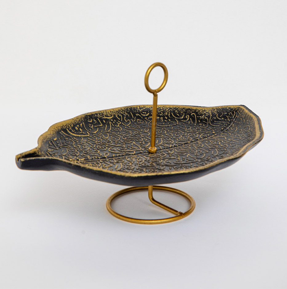 Give your kitchen an Arabian touch with this 22*18cm plate. The tray is crafted from ceramic and features an overall Arabic golden letters. The plate comes with a two-piece handle.