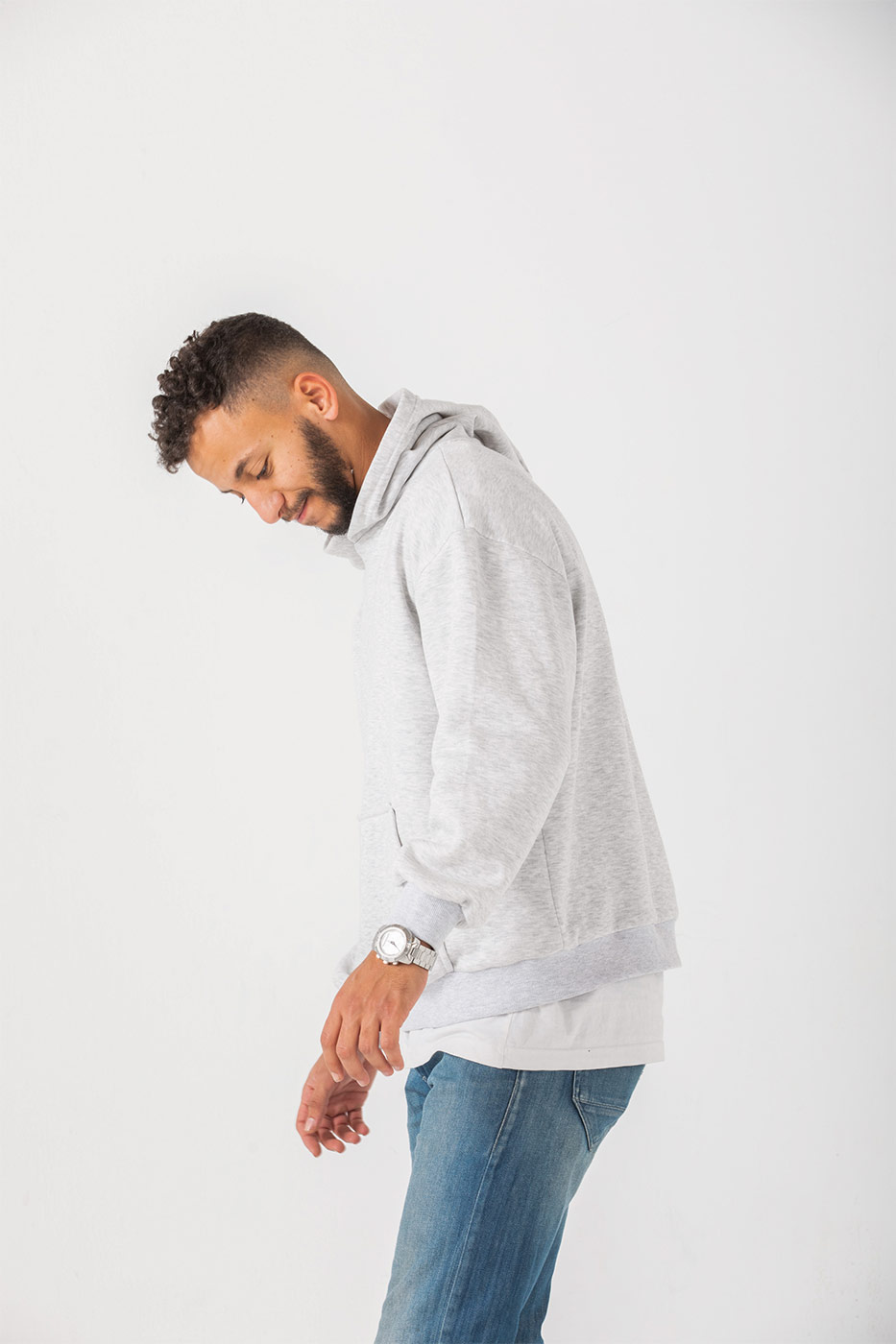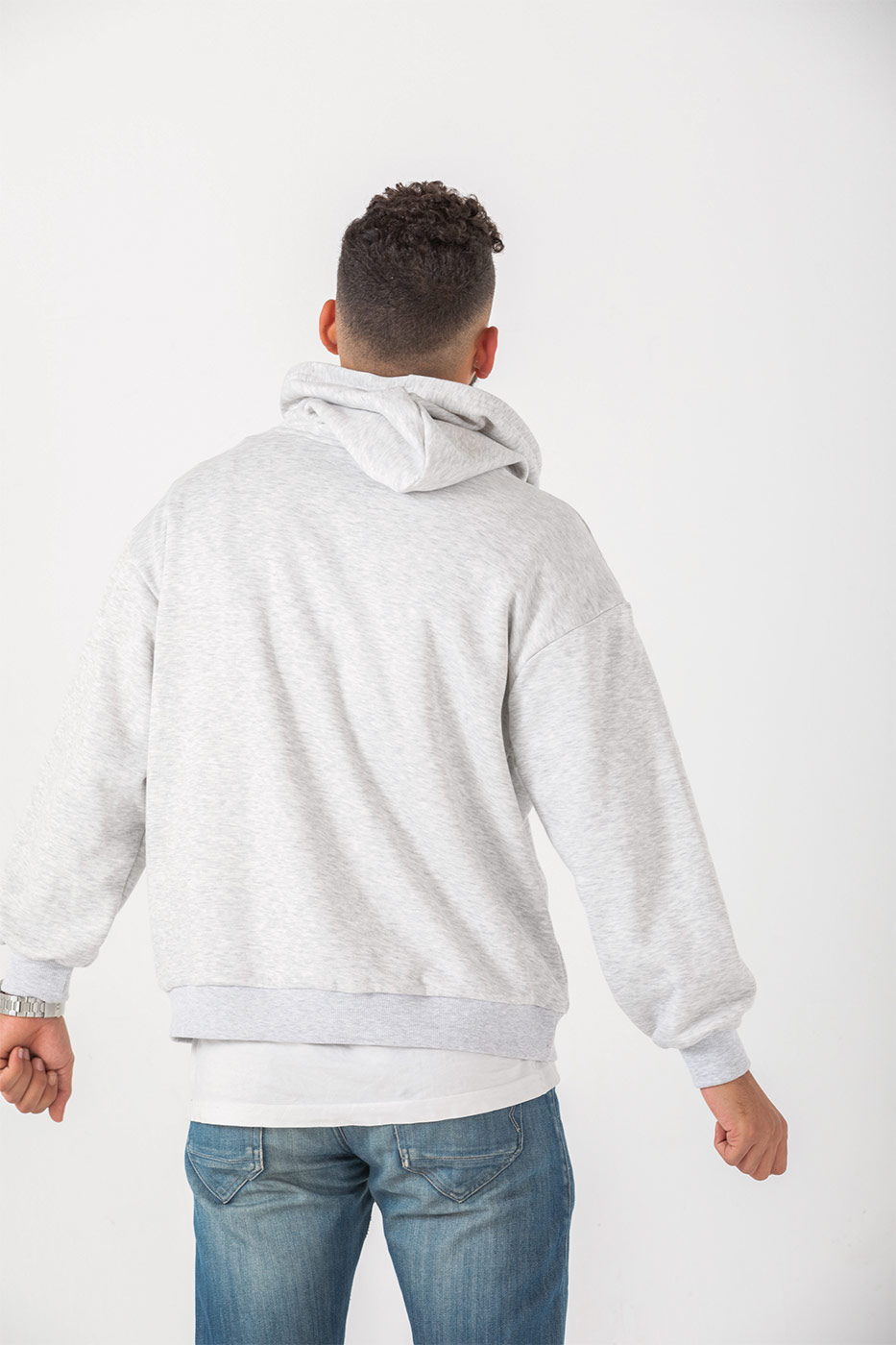 Loose fit sweatshirt with adjustable hooded collar and long sleeves. Front pouch pocket. Ribbed trim.Size Details
