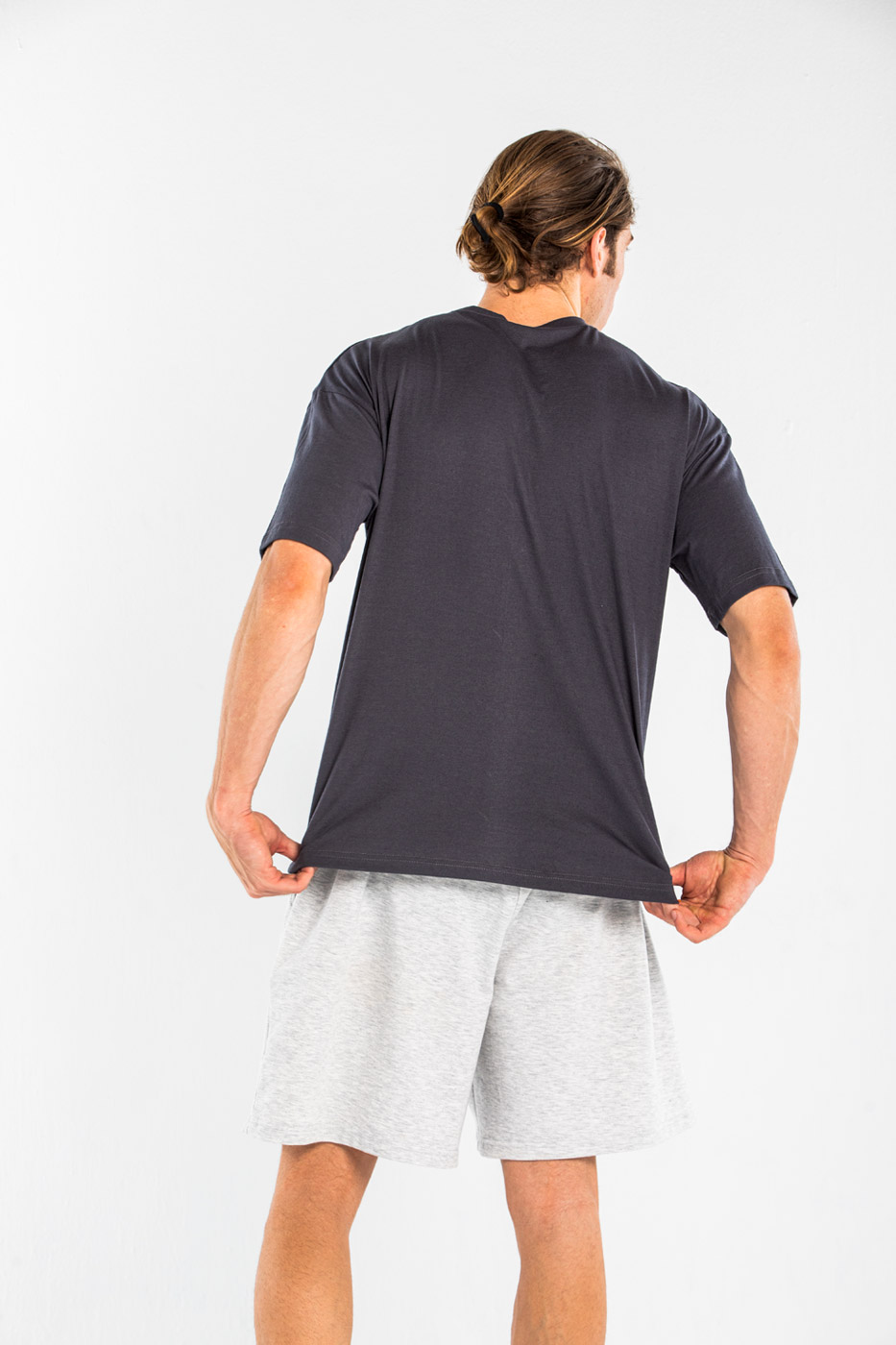 تى شيرت بقصة مستقيمة مع أكمام قصيرة و تصميم عنق دائرى.
