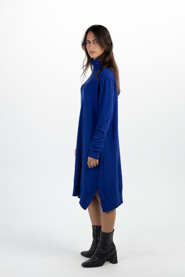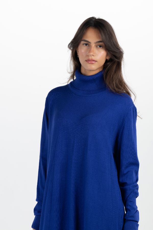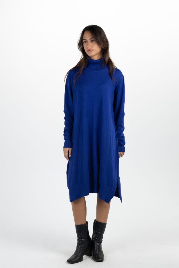 Basic Turtleneck Dress In Blue