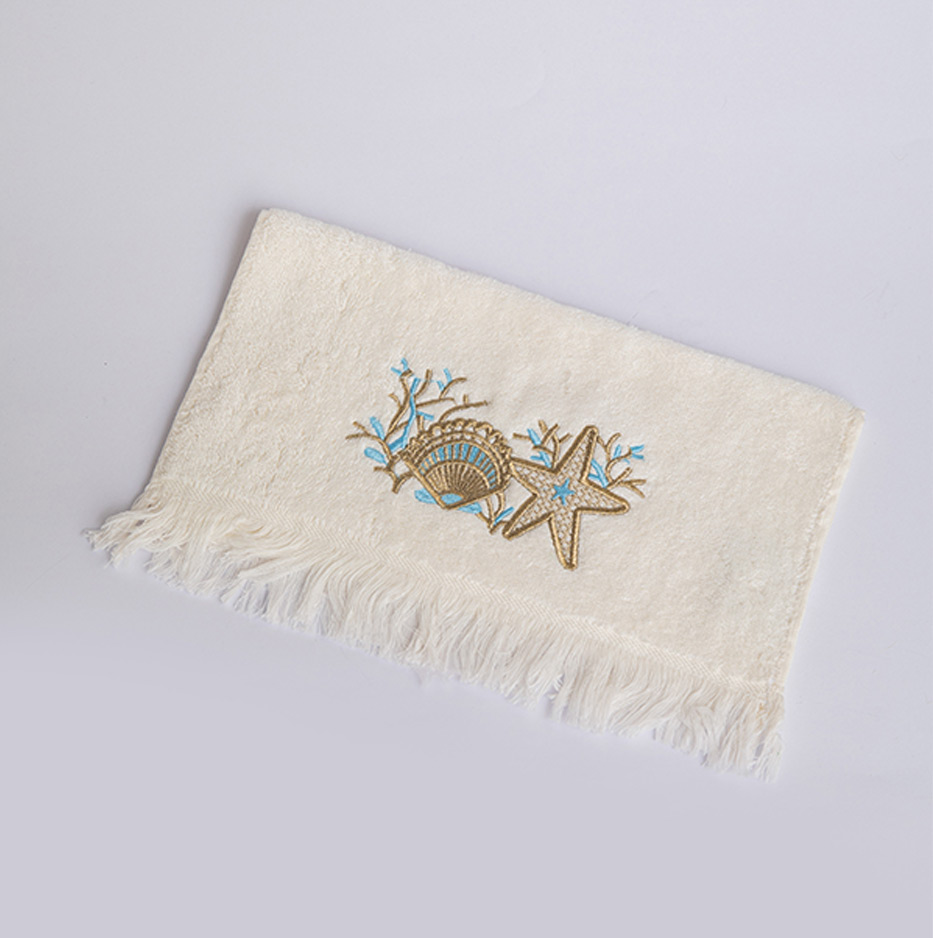 To dry your face gently go with this ‘ Beach Shells ‘ face towel. It features beach shells and it’s fabric is gentle and absorbent.