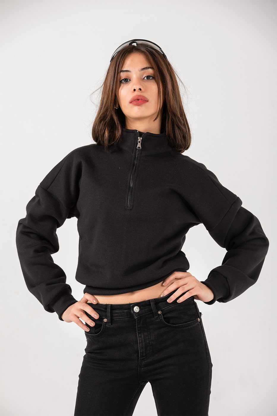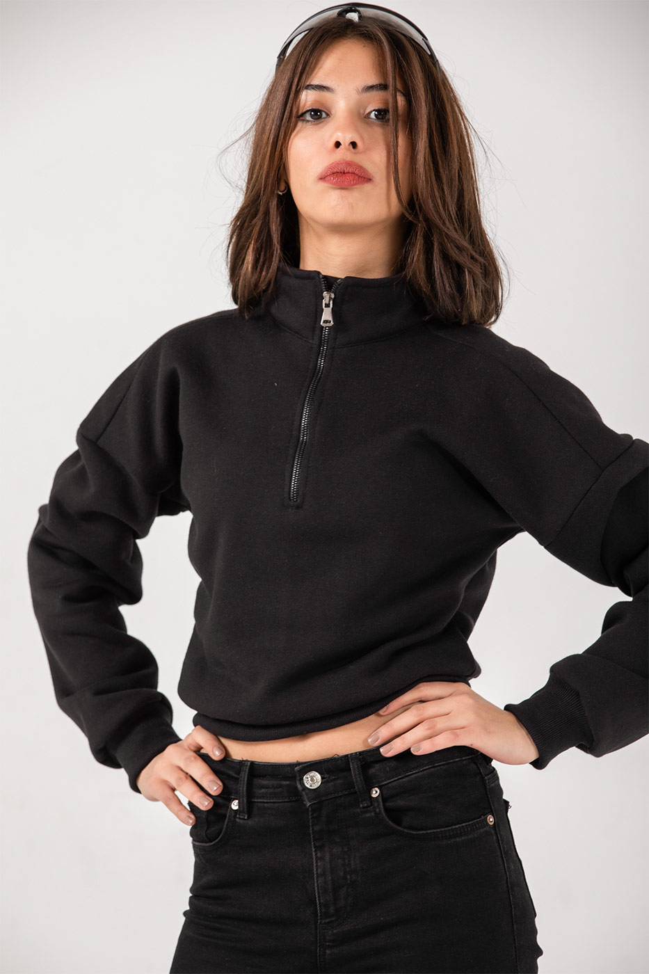 سويت شيرت مع أكمام طويلة و سحاب أمامى و تصميم قبة عالية.