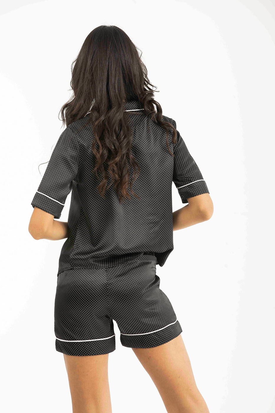 Black Shorts Dotted Buttoned With Pink Edged Satin Pyjama