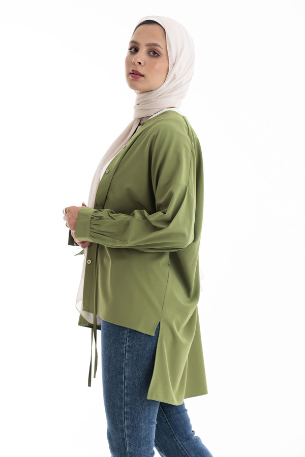 Be the first to review “Buttoned Tie Shirt In Olive Green”
