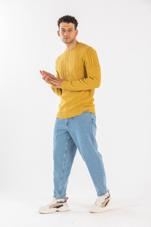 Crew neck sweater. Knitted fabric in a straight cut pullover style. With a ribbed knit neck.Size Details