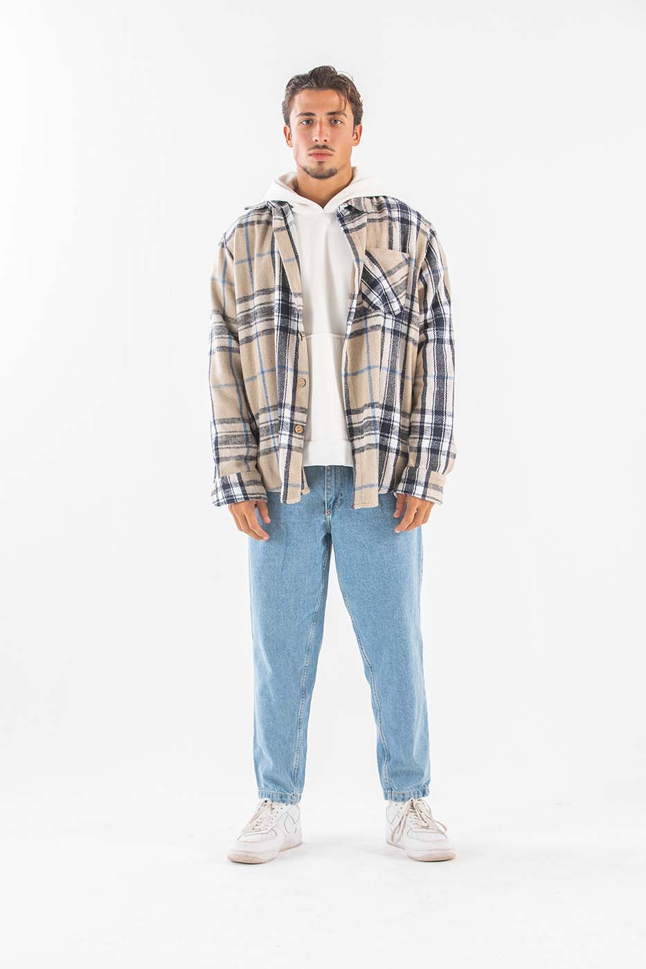 A wool blend checkerd shirt to add dimension to any basic lookSize Details