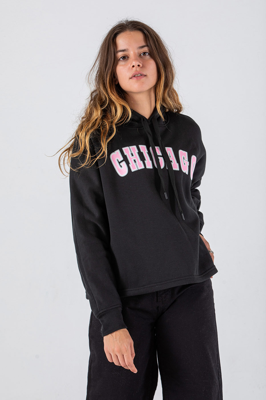 Long-sleeved hoodie in sweatshirt fabric with a motif on the front, drawstring hood and ribbing at the cuffs and hem. Soft brushed insideSize Details