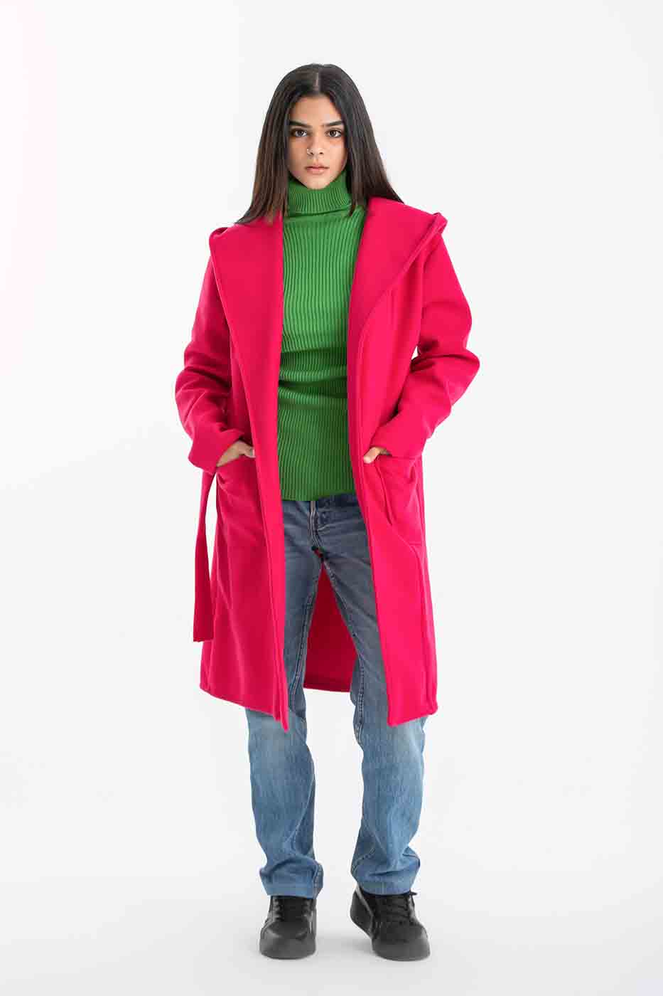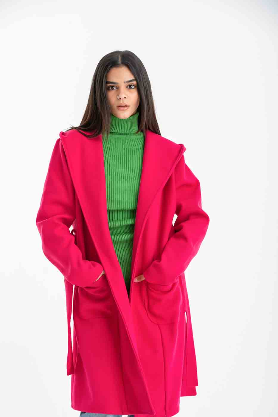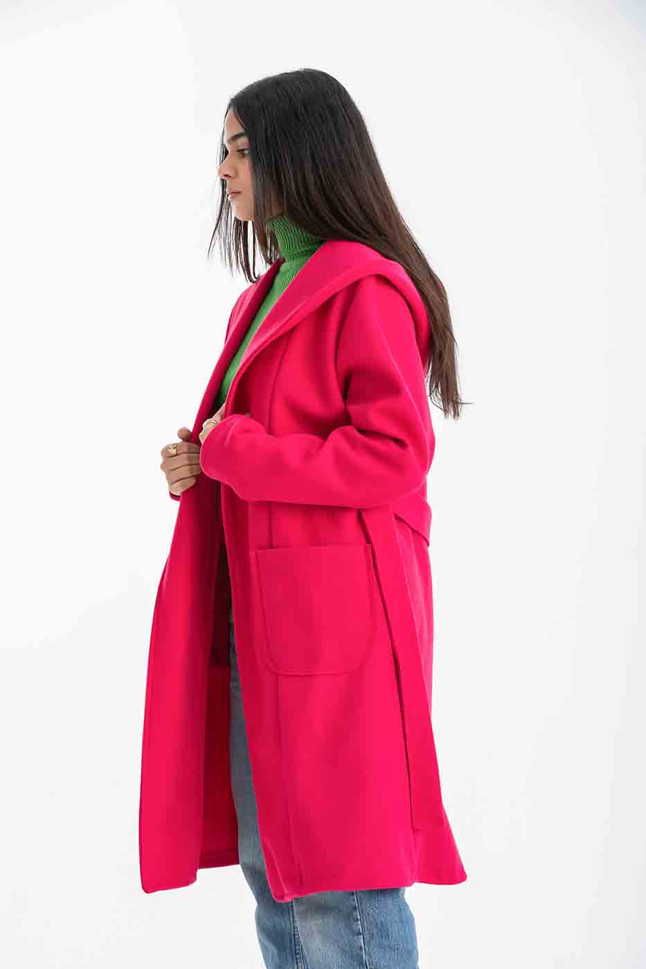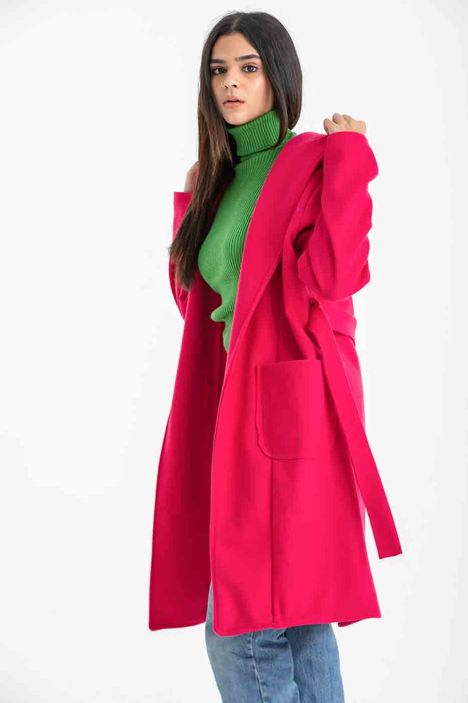 جاكيت متوسط الطول بقصة مستقيمة مع أكمام طويلة وجيوب جانبية.