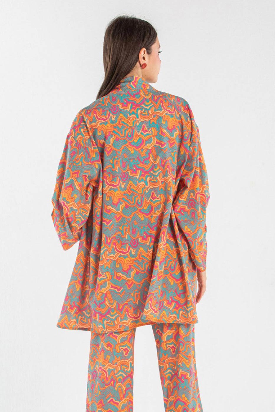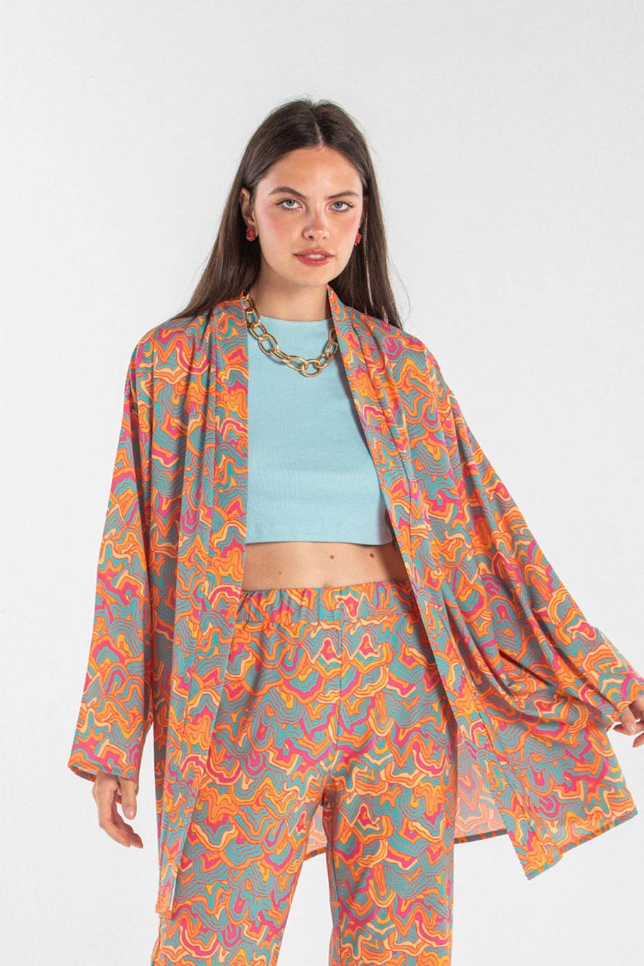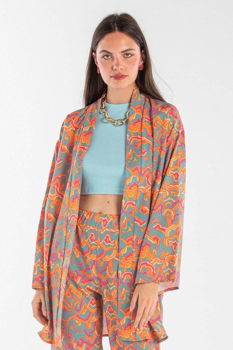 In a fresh look -based Illustrated print, this kimono adds a perfect light layer for warmer days. Pair with a silky cami, denim shorts and sandals to finish the look.Care Instructions