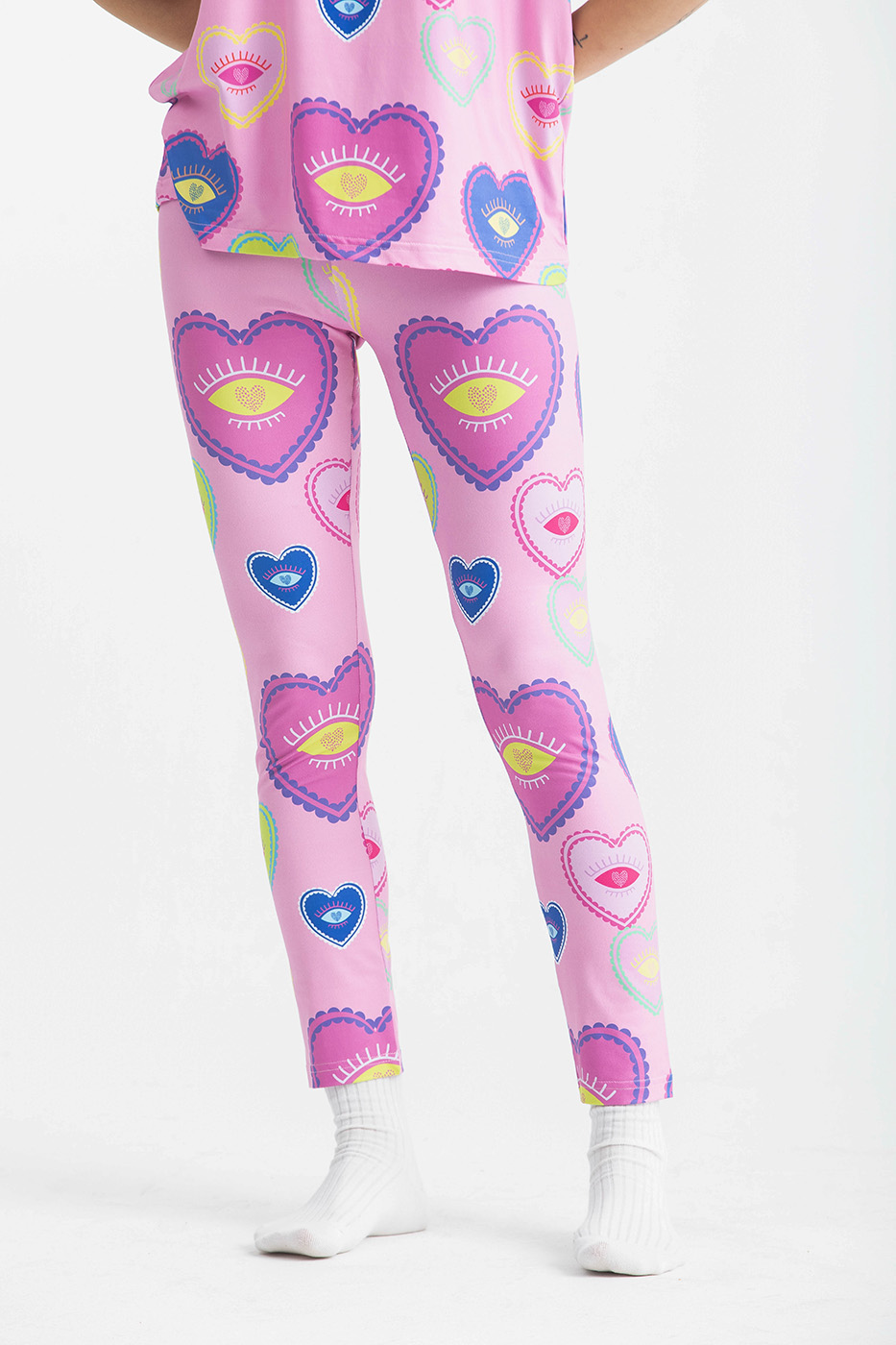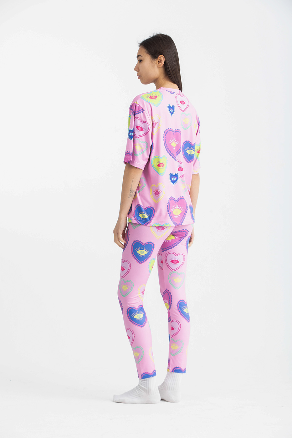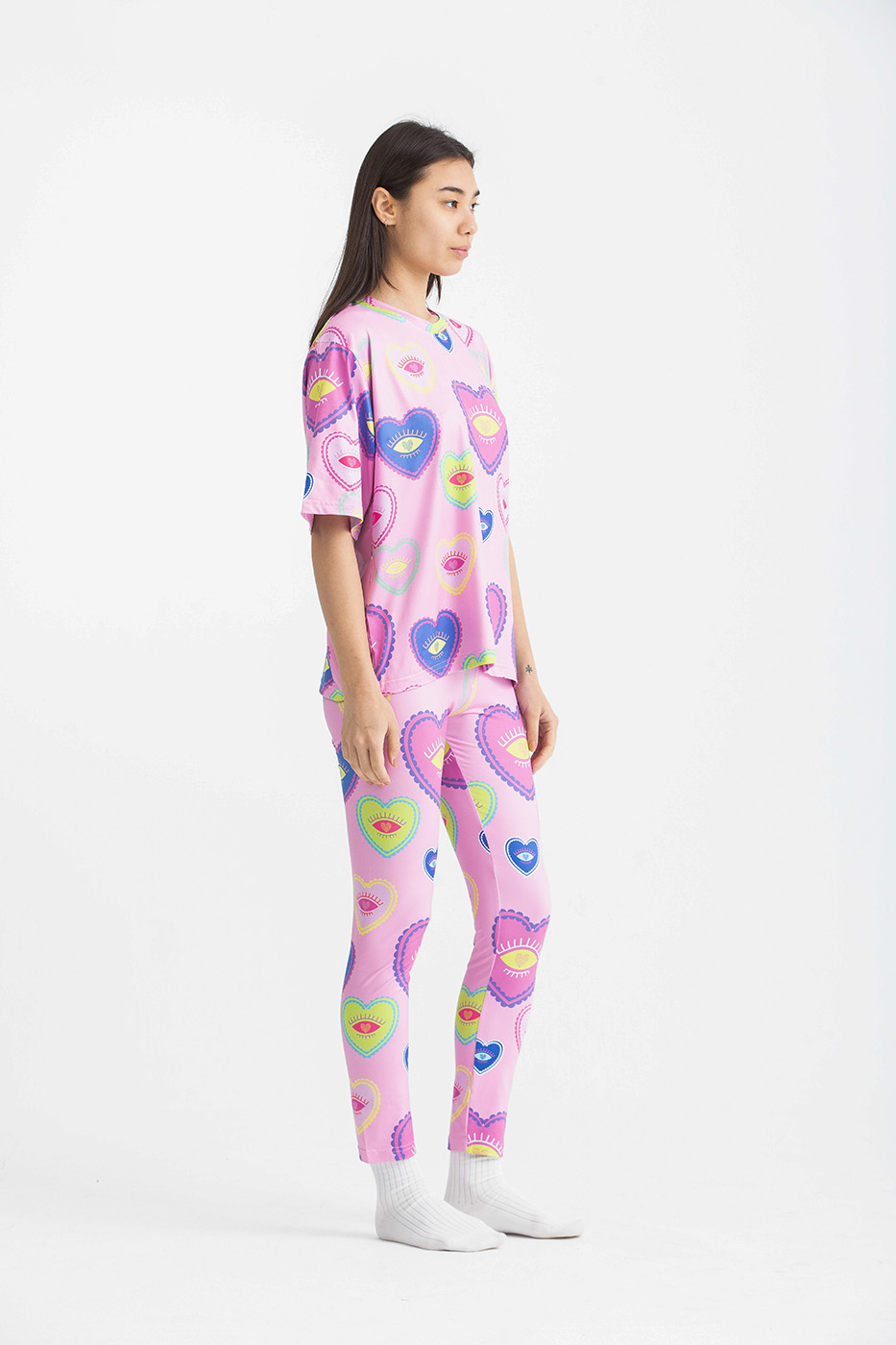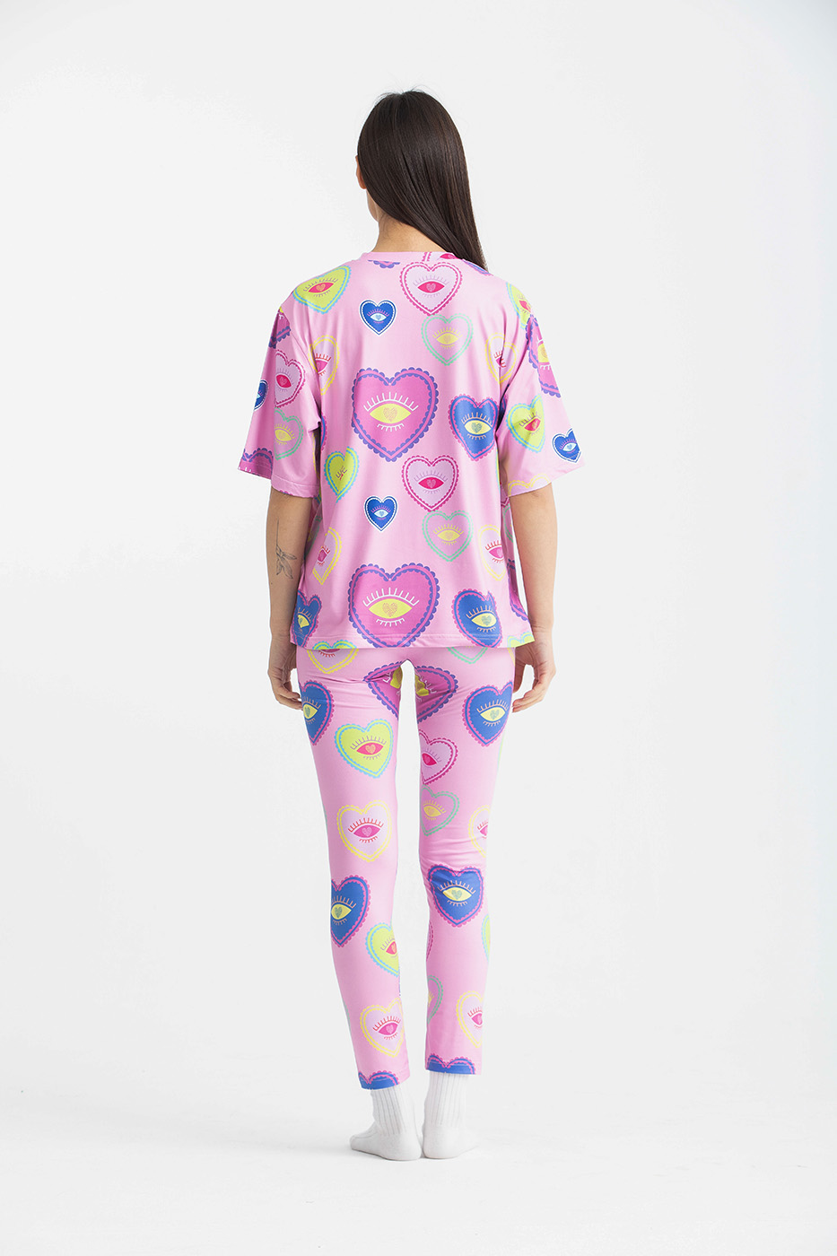 Colored Heart Short Sleeve Crew Neck Pyjama Set
