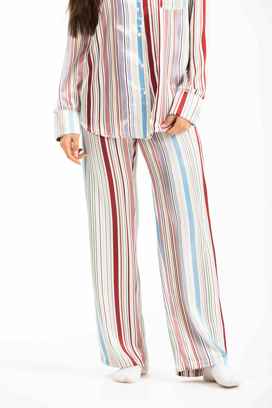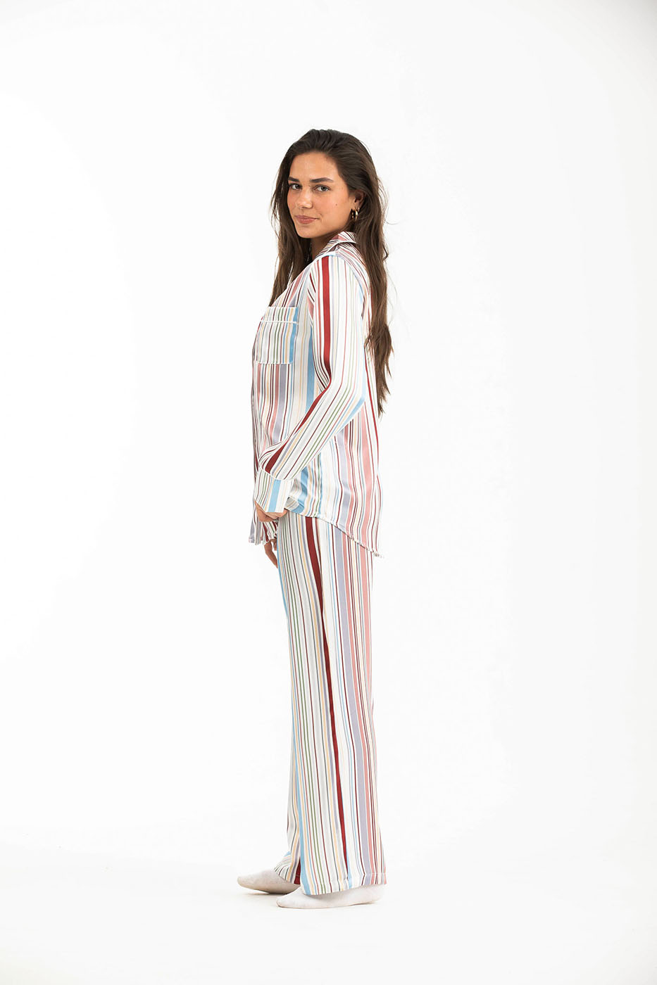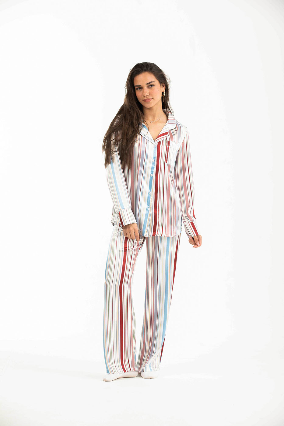 Colorful Buttoned Long Sleeved With Front Pocket Satin Pyjama Set