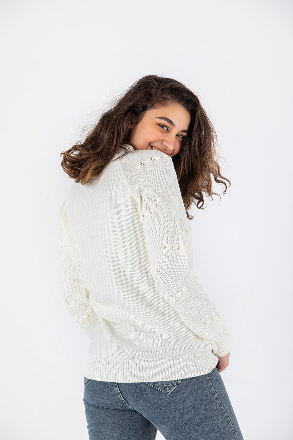 Comfort in Pompoms Pullover in White