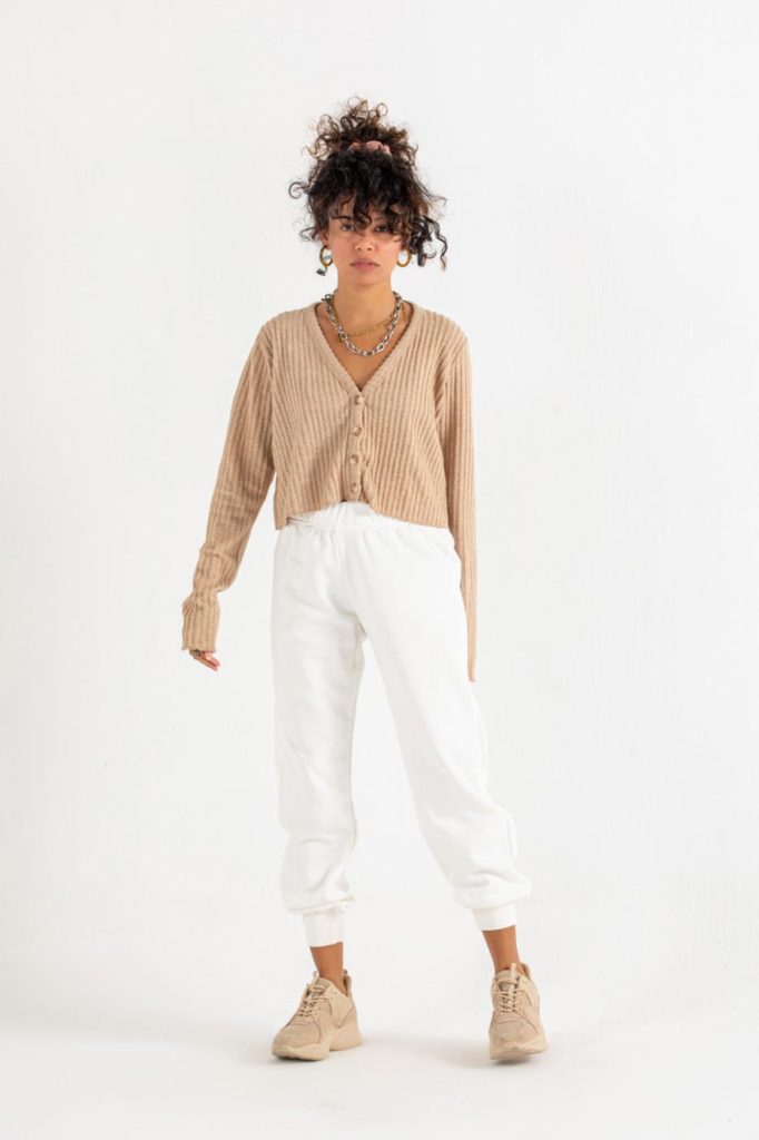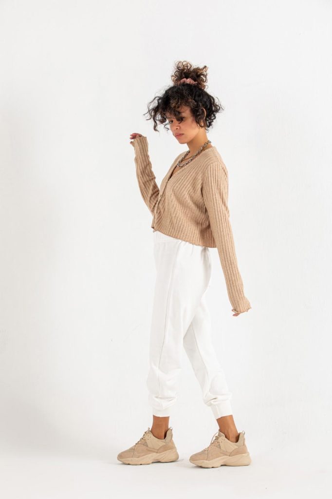 Looking for a comfy yet cool look, put on this white jogger pants. This mid-rise pants features an elasticated waist and cuffed hem. Style it with a light shade top for a neutral look!Size Details