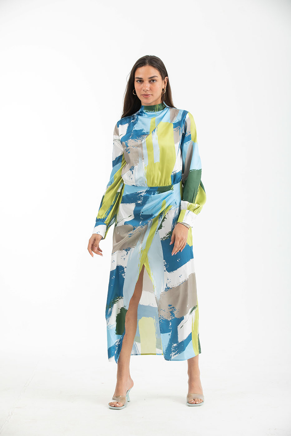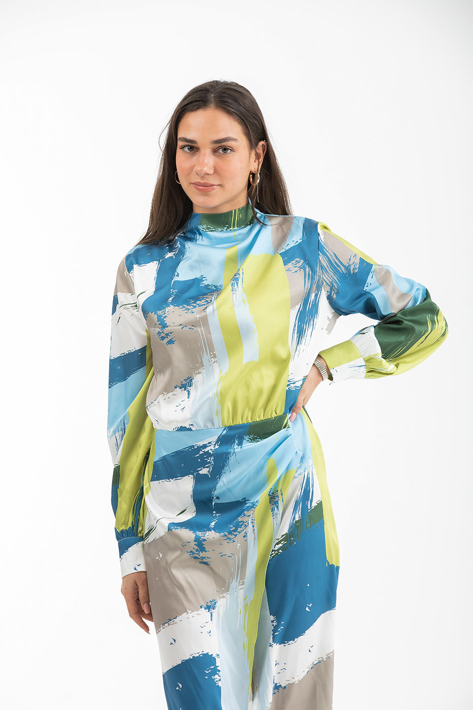Cowl Neck Satin Midi Dress In GreenSize Details