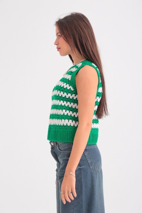 Crochet Vest In Green & White