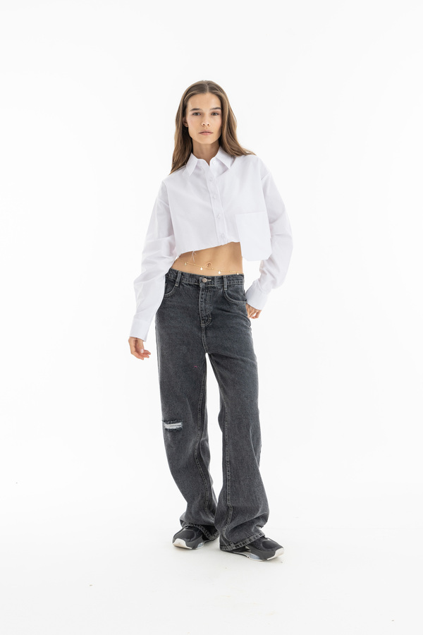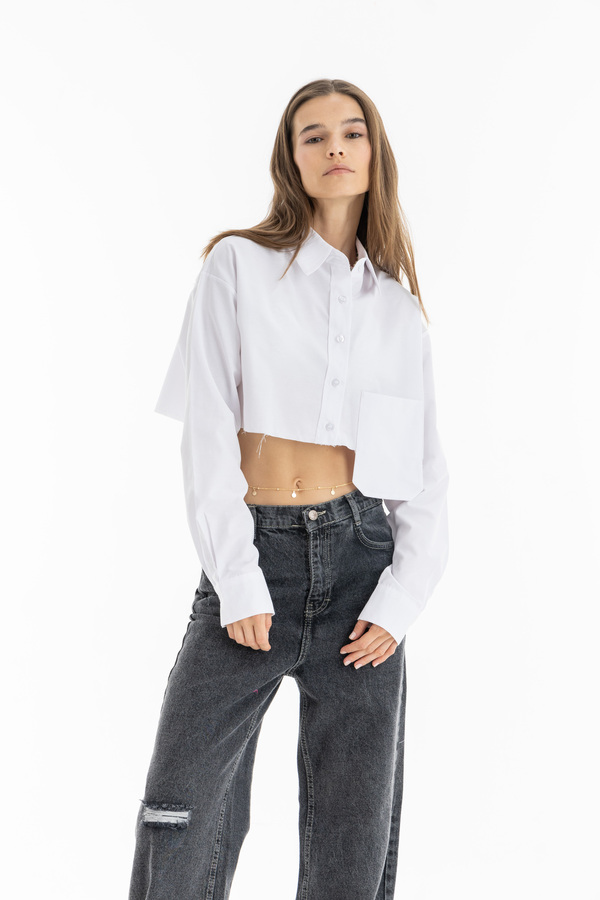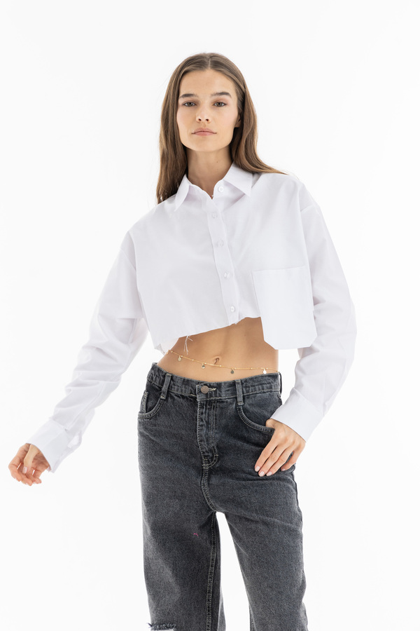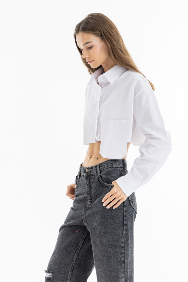 Cropped Pocket Shirt In White