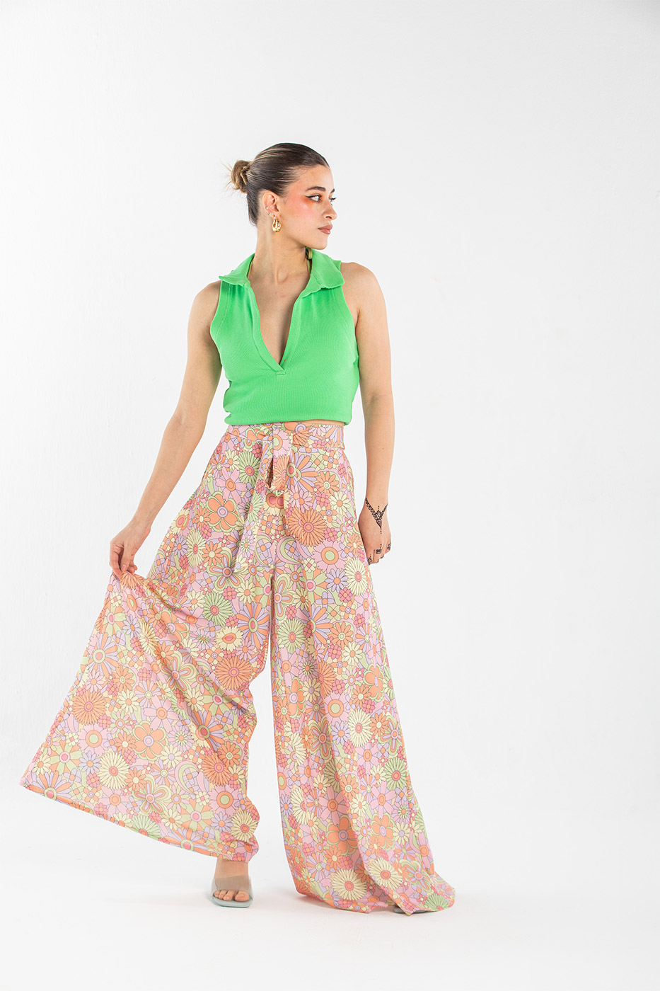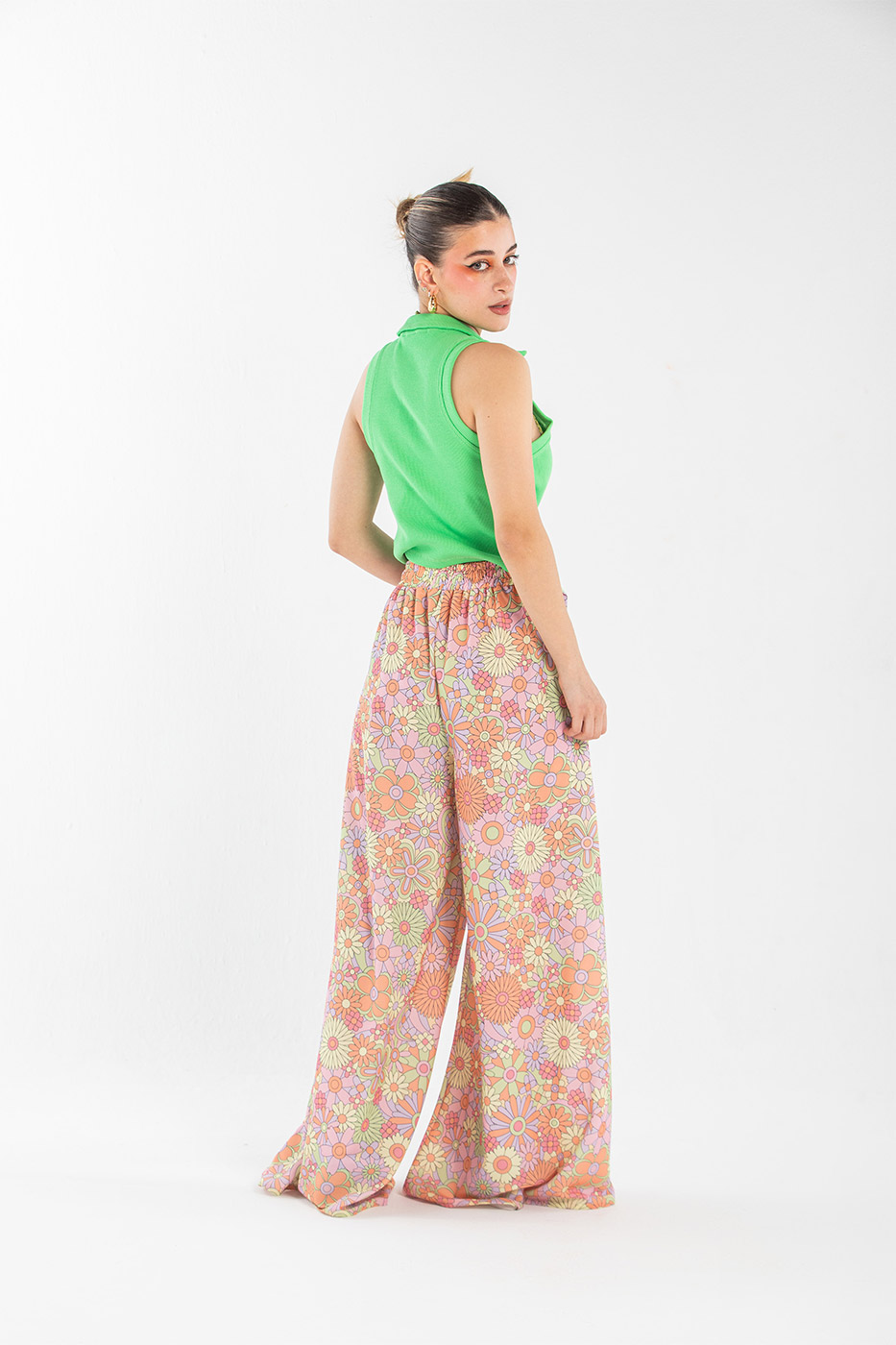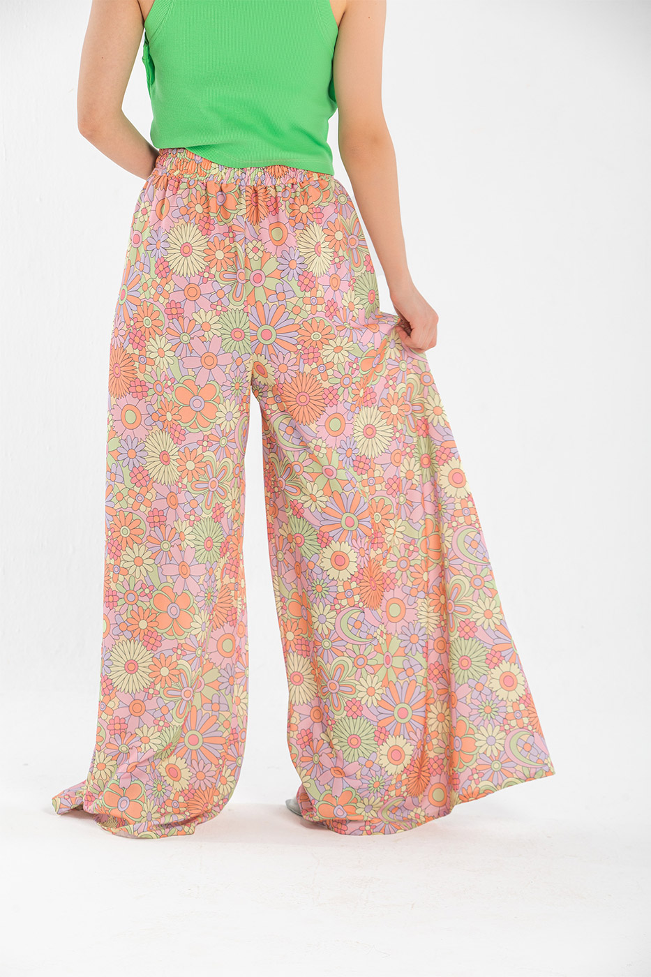 بنطلون فضفاض مطبوع مزين بربطة مع خصر مرن.