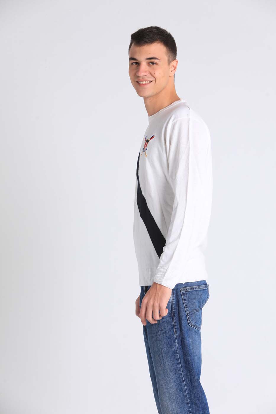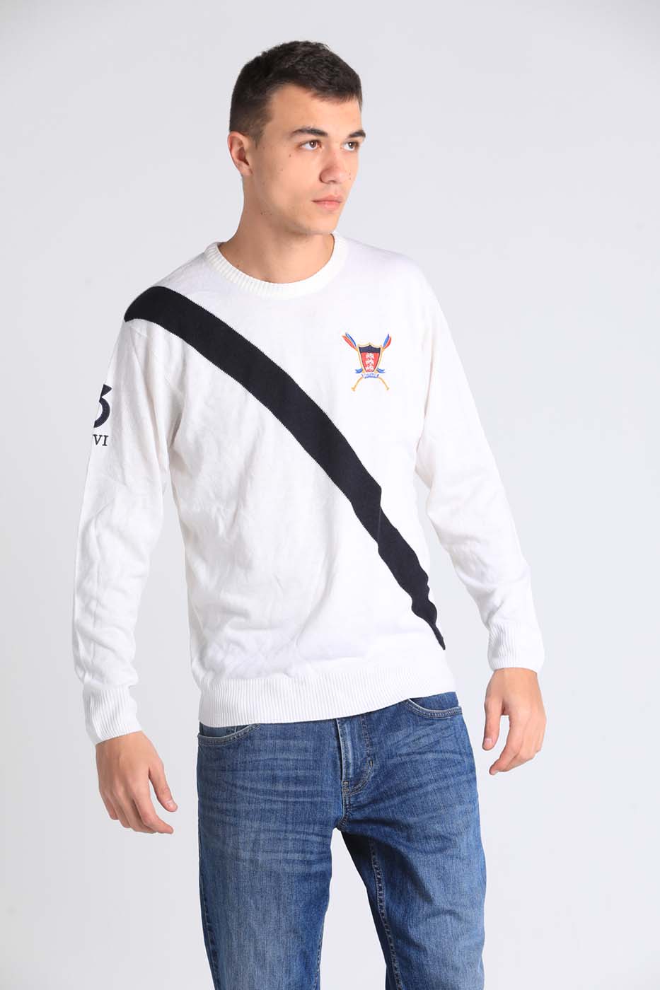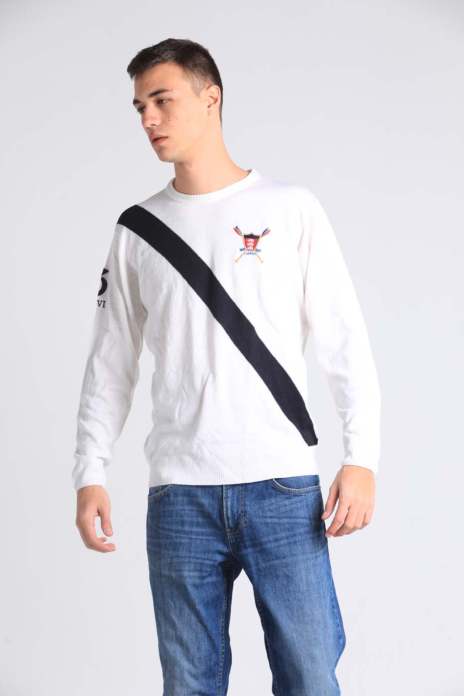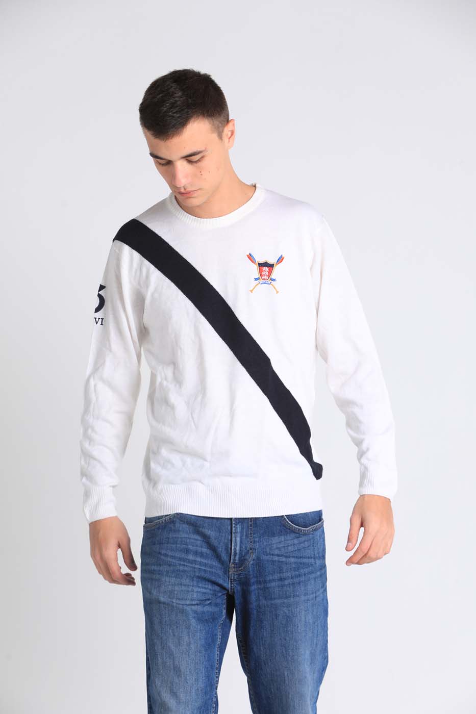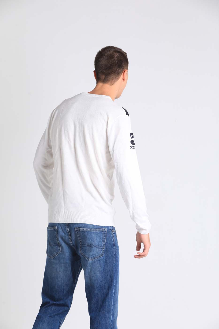 Crew neck sweater. Knitted fabric in a straight cut pullover style. With a ribbed knit neck.Size Details