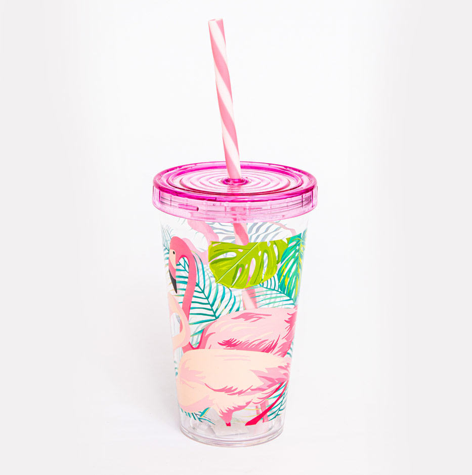 This tumbler cup is convenient for your kid to carry everywhere when they go out to play. This ‘ Flamingo ‘ tumbler cup comes with a lid and a straw so you can enjoy your cold beverage all day long !
