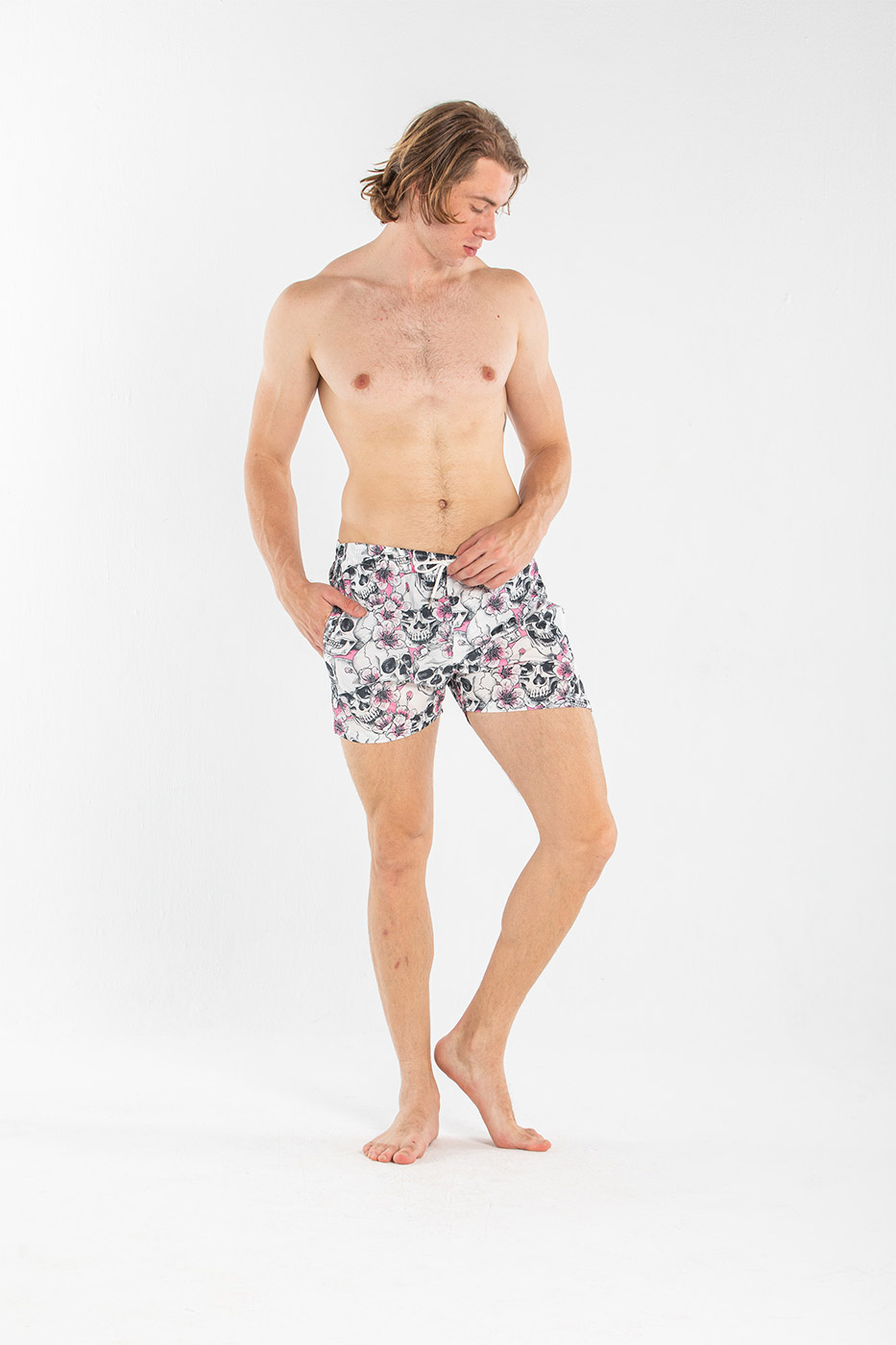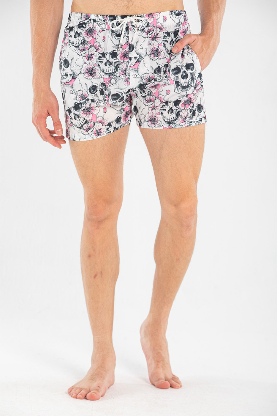 Enjoy the cool swim shorts that feature an allover printed pattern, an elasticated drawstring waist, side pockets, and a back pocket.Size Details