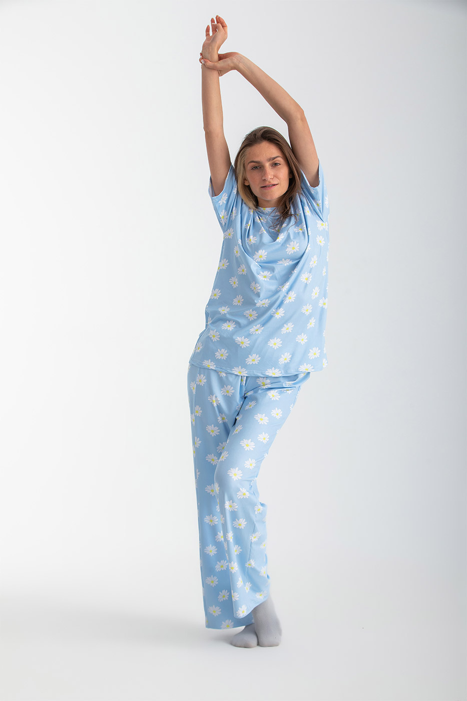 Pajama set features with an allover floral print to add comfort. Regular fit, with short sleeves and long pants with a Crew neck design.Care Instructions