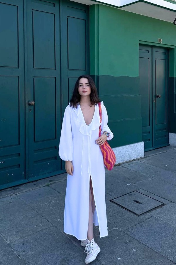 Flowy Cover up Dress In White