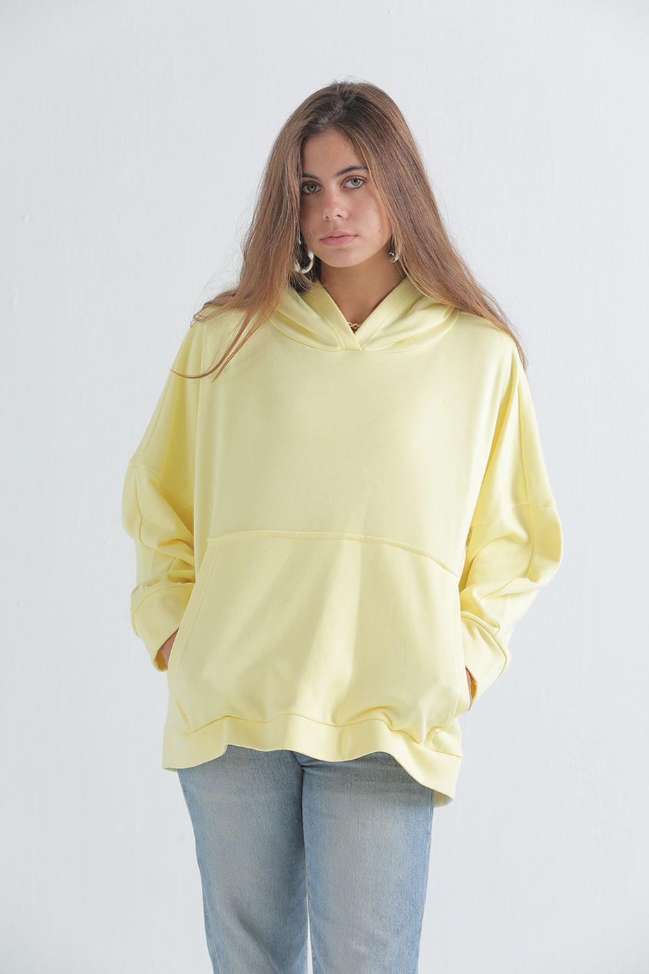 Here's our basic yellow hoodie that should be in your wardrobe this winter! This hoodie features a hood, front pouch pocket and dropped shoulders. Style it the way you want it !Size Details