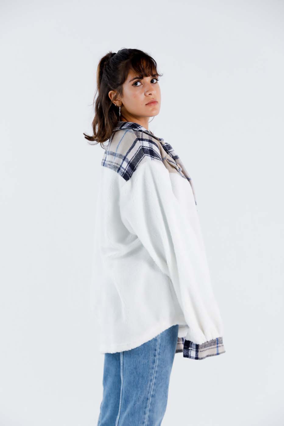 add dimension with our whool blend fuzzy shirt to your winter looks.Size Details