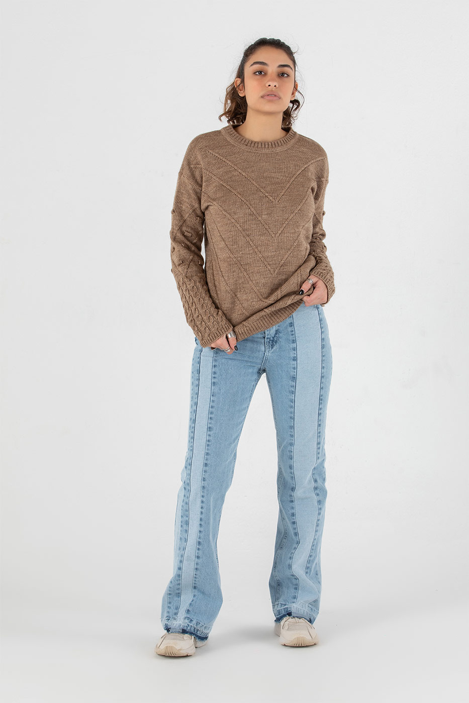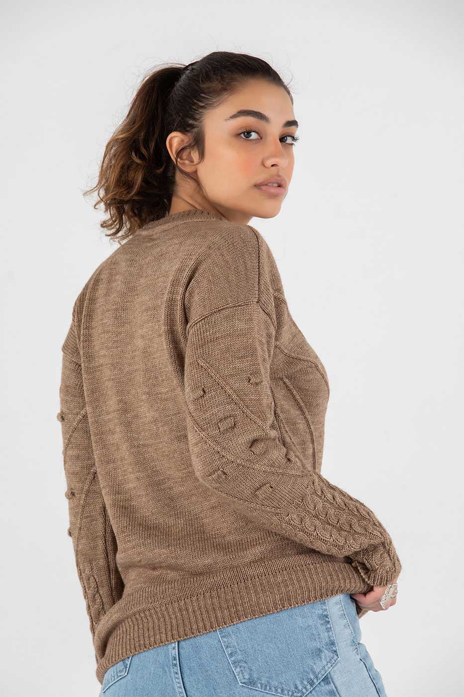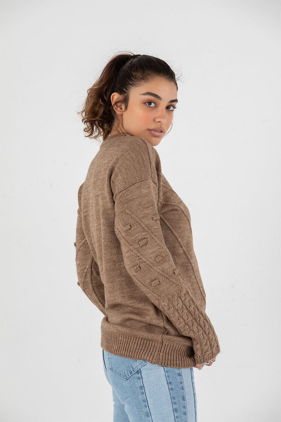 Loose-fit sweater in a soft, fluffy knit with mohair content. Heavily dropped shoulders, long sleeves, and WITH CABBLE KNIT SLEEVESSize Details