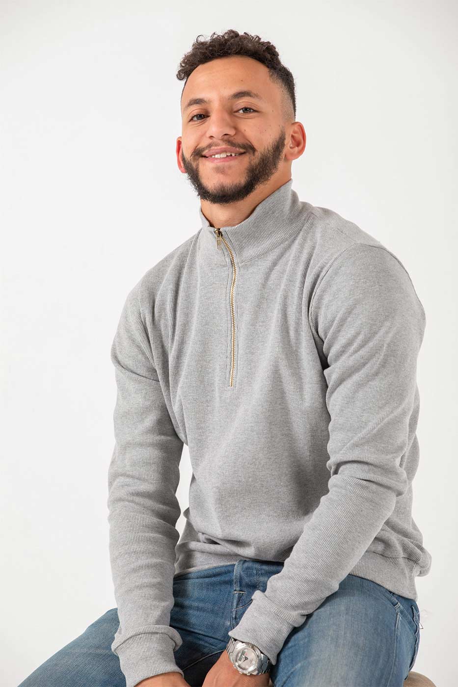 سويت شيرت مضلغ مع أكمام طويلة و سحاب أمامى و تصميم قبة عالية.