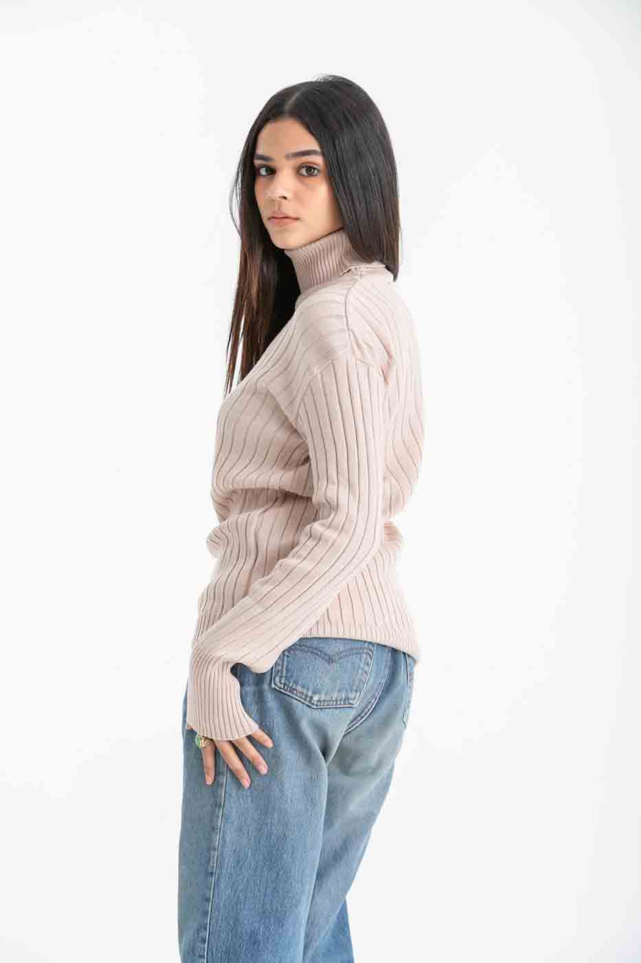 High Neck Sweater In Creme – FYI