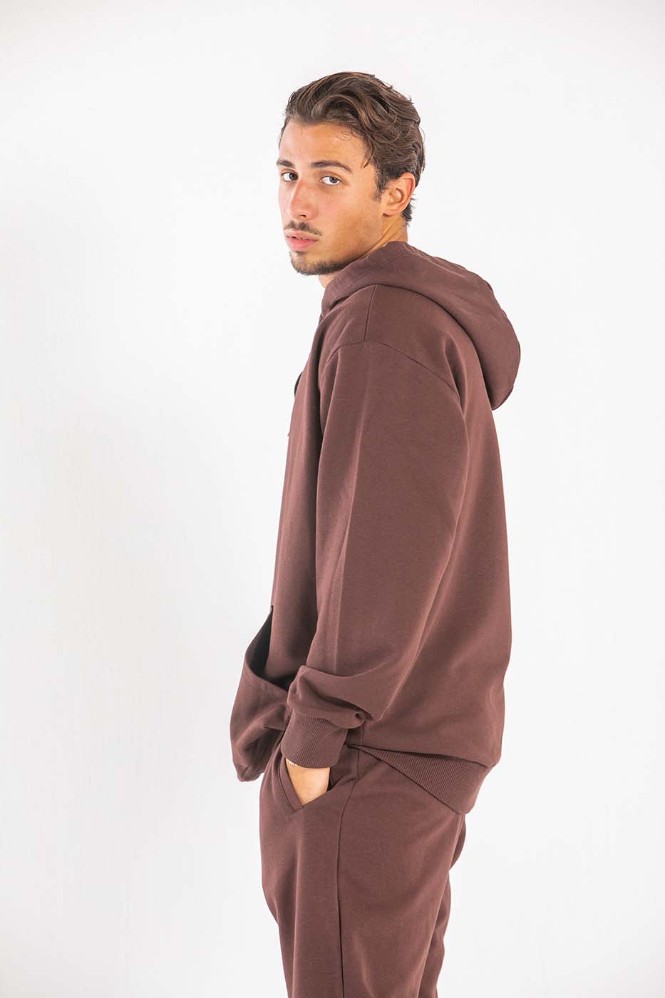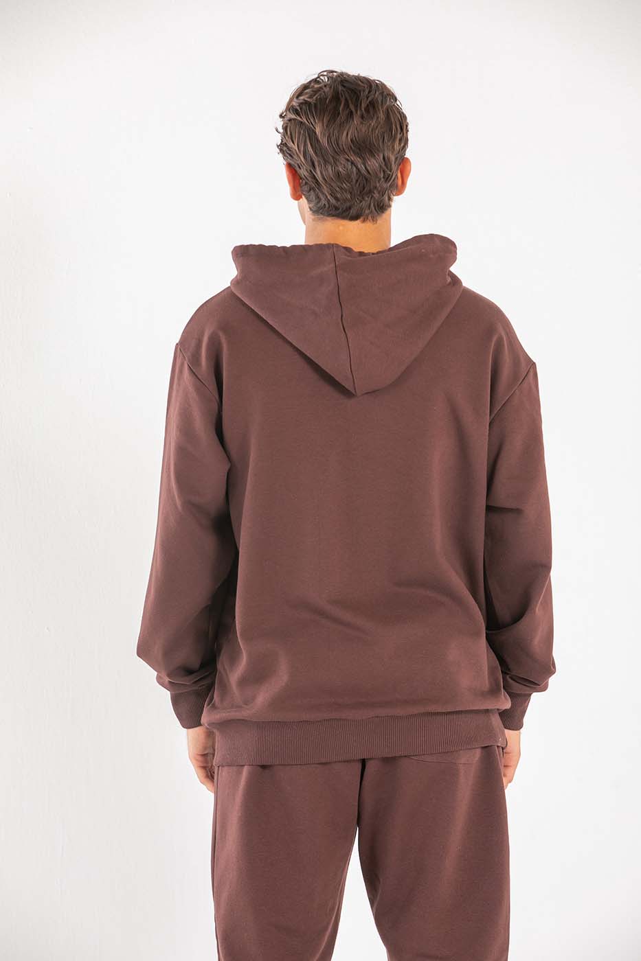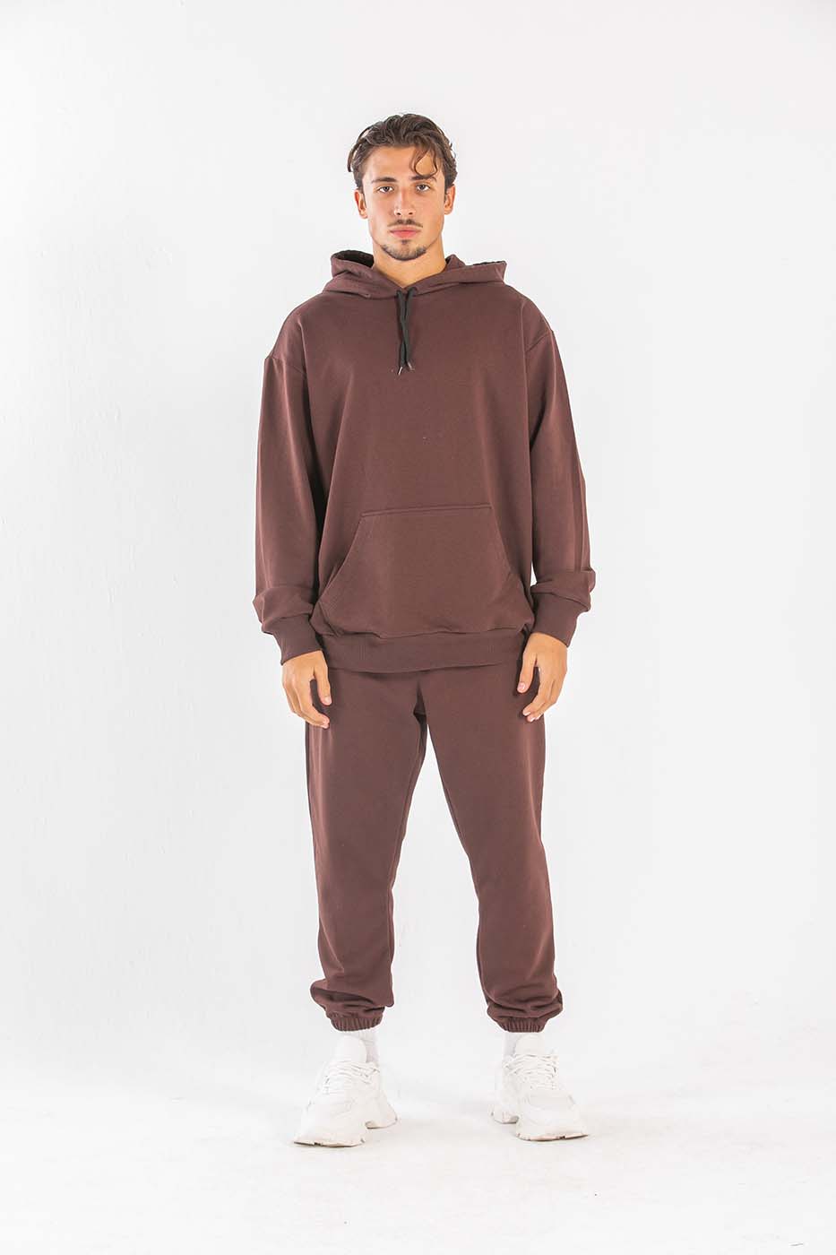 طقم قطعتين من سويت شيرت بأكمام طويلة وغطاء للرأس و بنطلون بخصر و حواف مرنة.