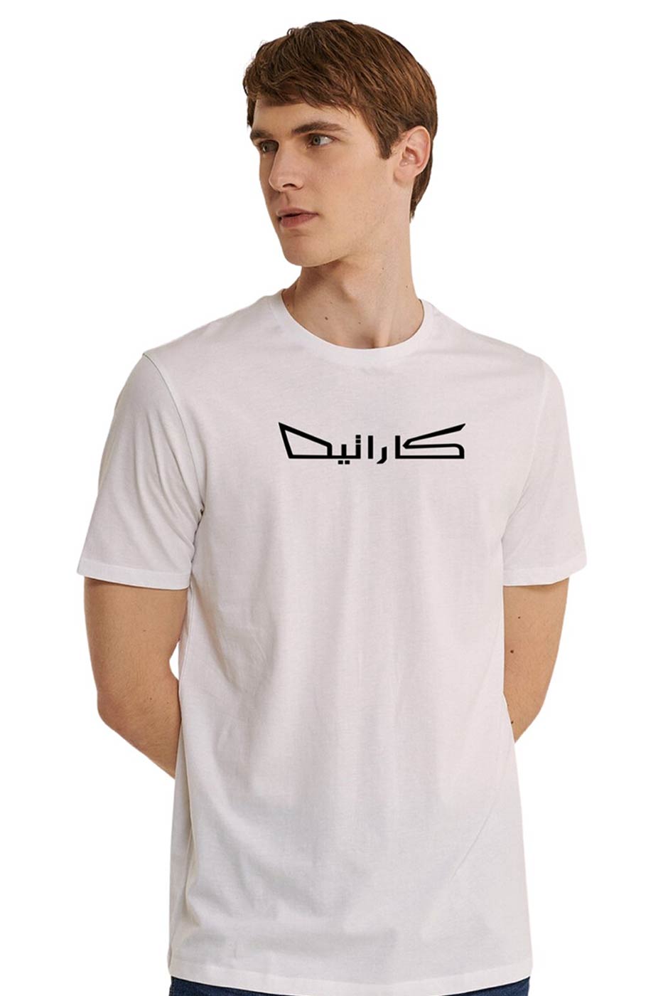 تى شيرت مزين بطبعة مع أكمام قصيرة و تصميم عنق دائرى.