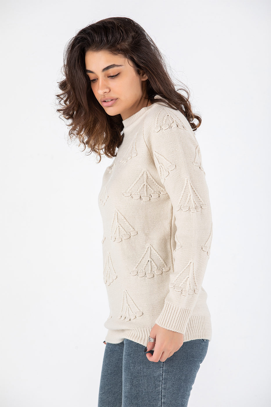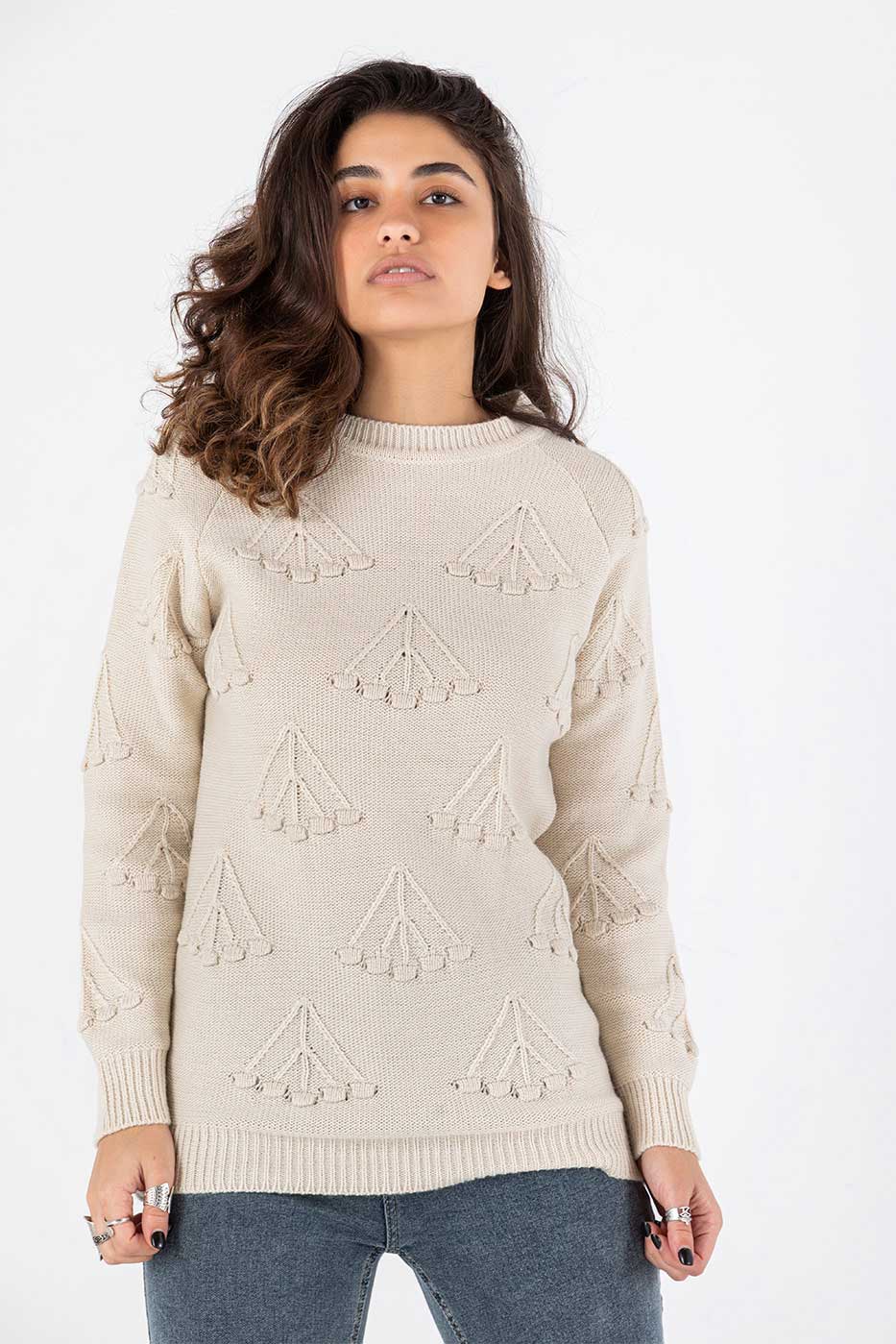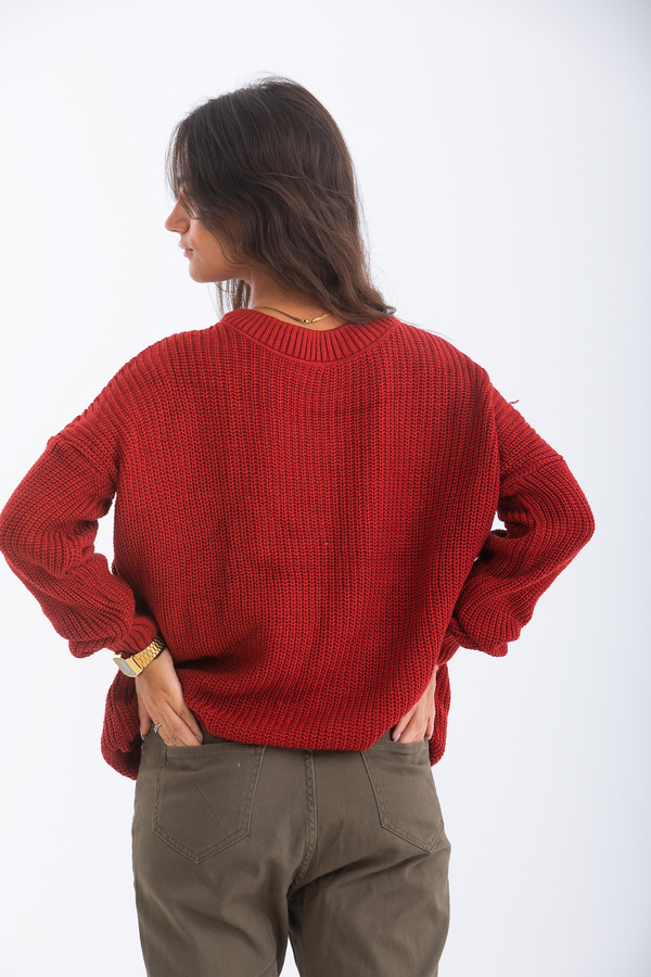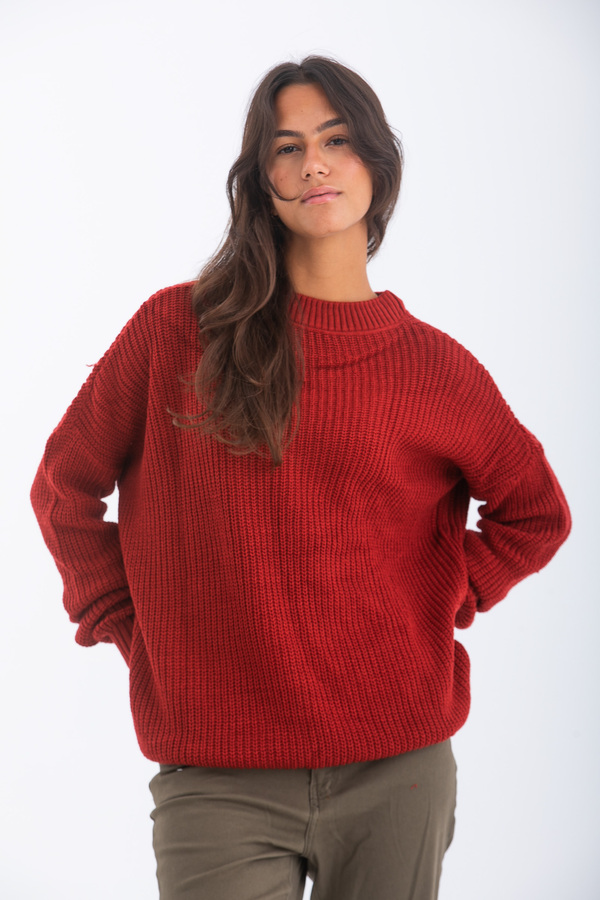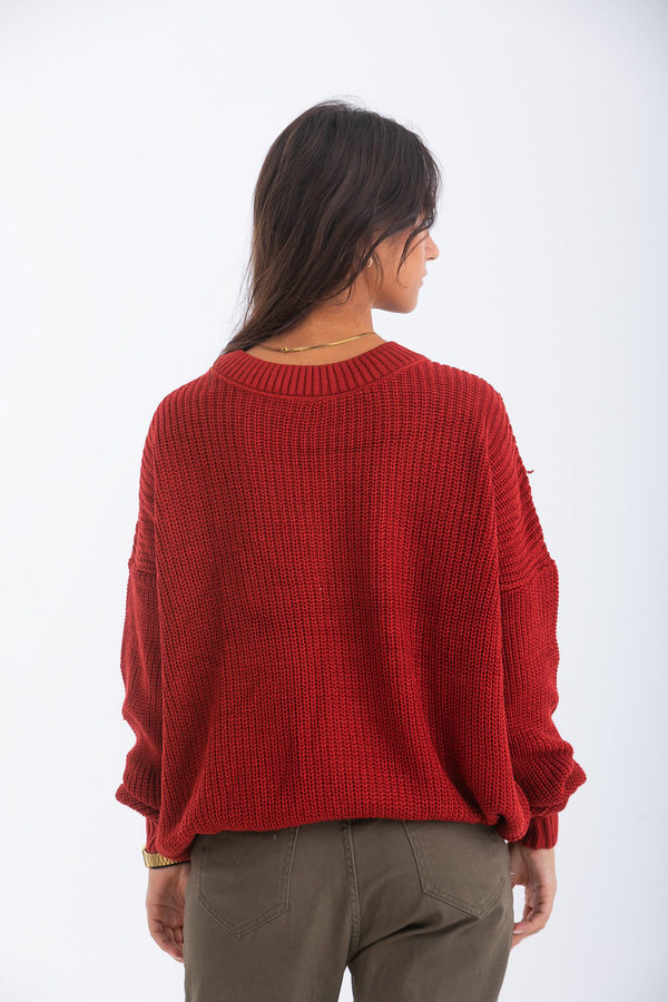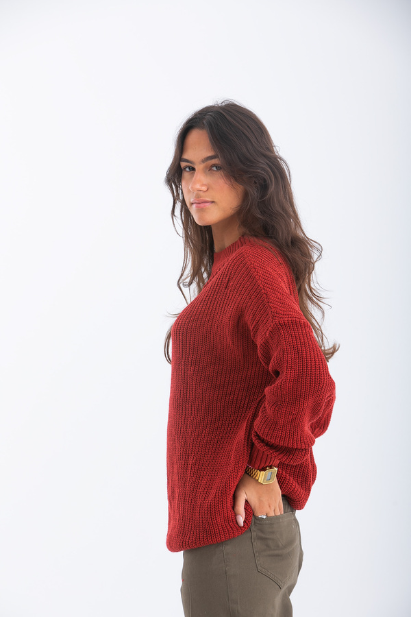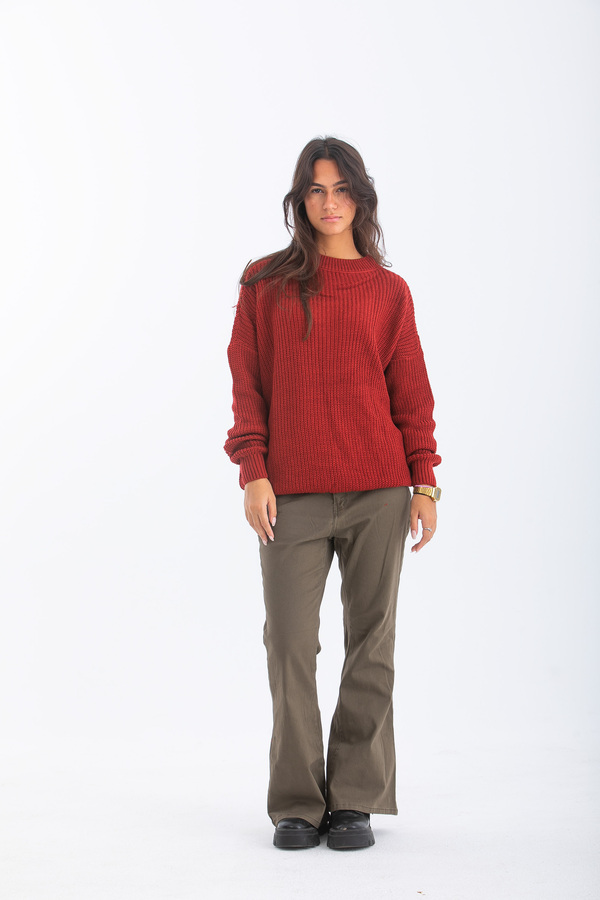 بلوفر تصميم قصة مستقيمة مع أكمام طويلة و عنق دائرى.