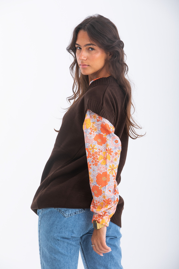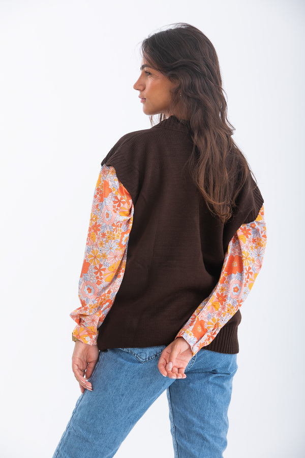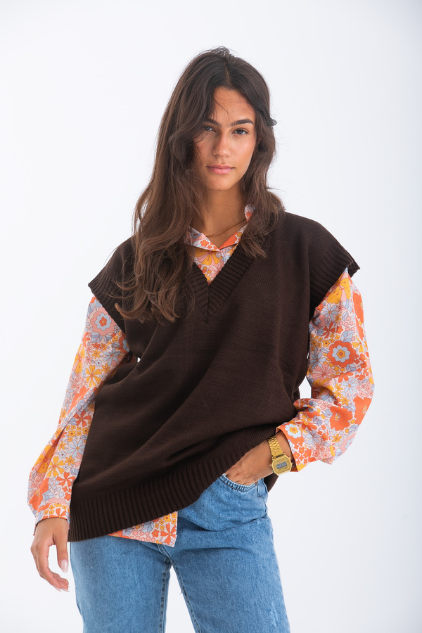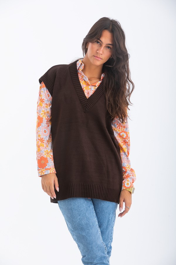بلوفر بقصة مستقيمة بدون أكمام مع تصميم عنق V.
