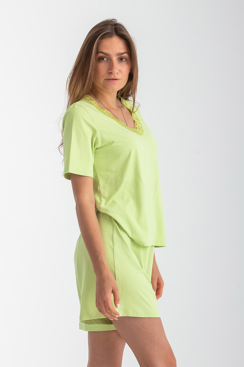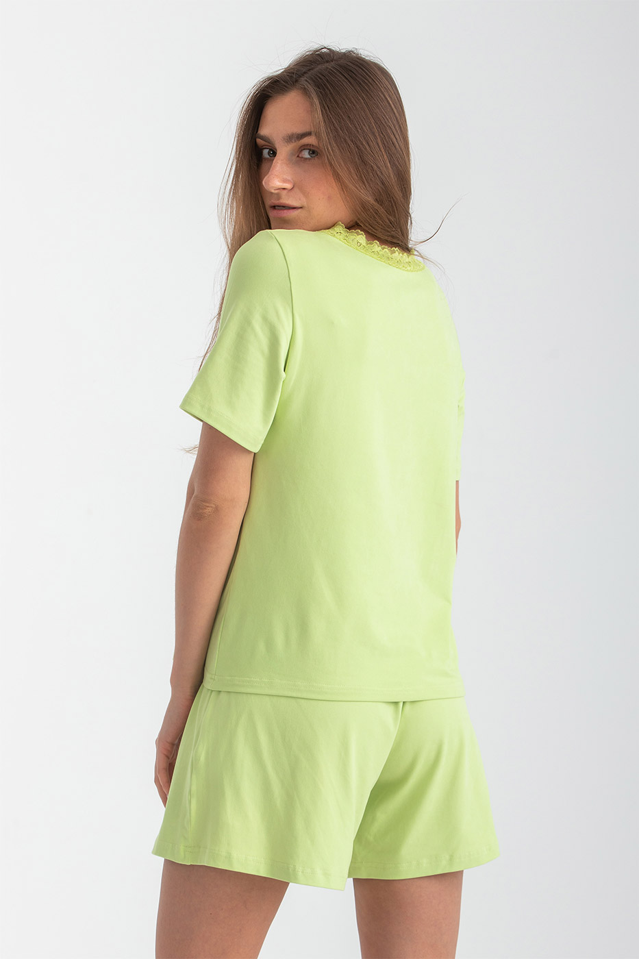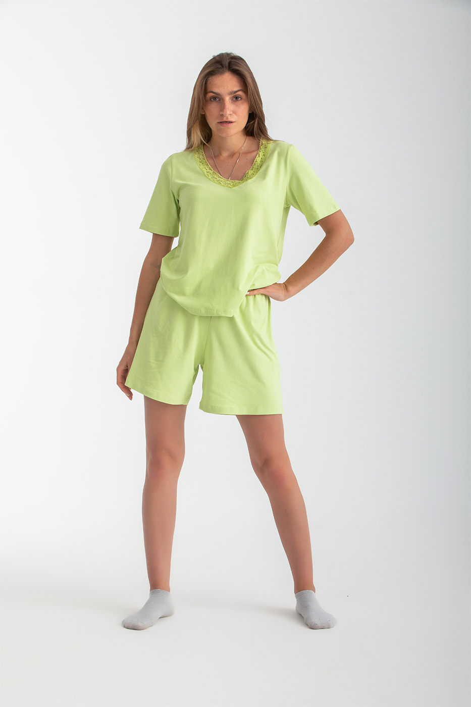 Get ready for those hot summer nights with our light poly cotton PJ set! Featuring a a spaghettin strap top with lace details and comfy shorts with an elasticated waistband and lace trimming!Care Instructions