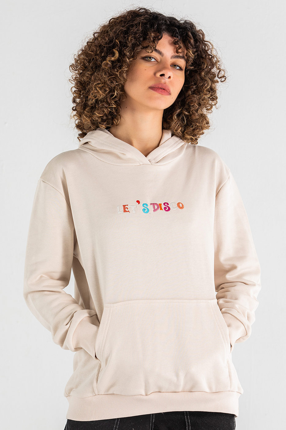 Warm-up in style in our comfy hoodie . It features an embroidered ' Lets Disco ' front logo, ribbed trims, hood and front pouch pocket to stash your essentials. Style it with your favorite denim and you are just on pointSize Details