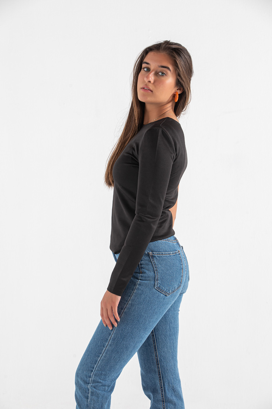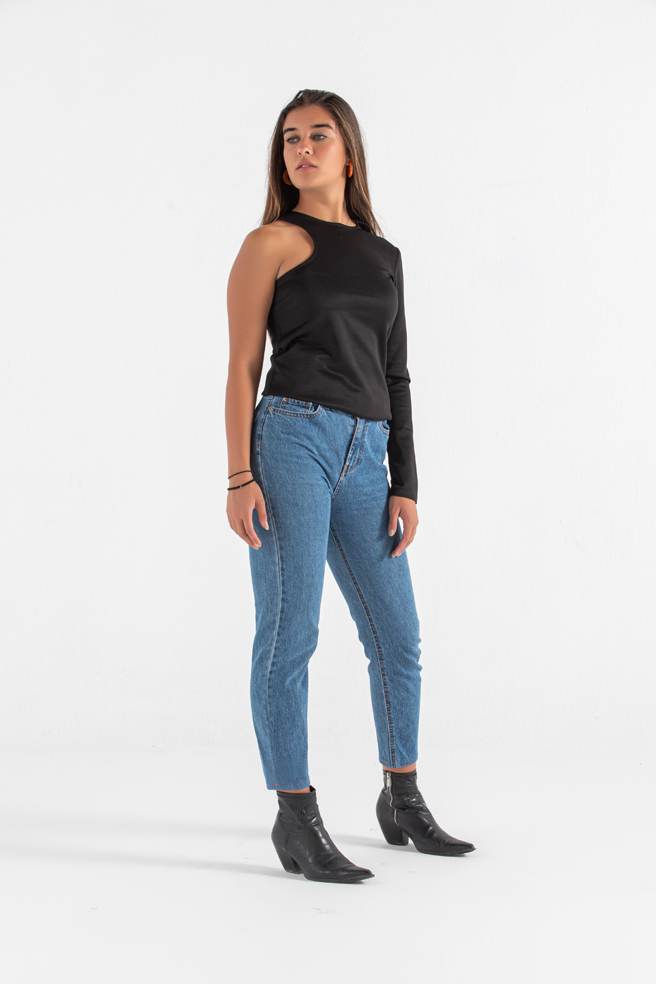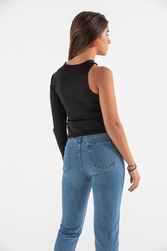 Head to the party in this black top. This top features an overall plain design, round neck and one sleeve design. Style it with your denim and ankle boots to hit the party in style.Size Details