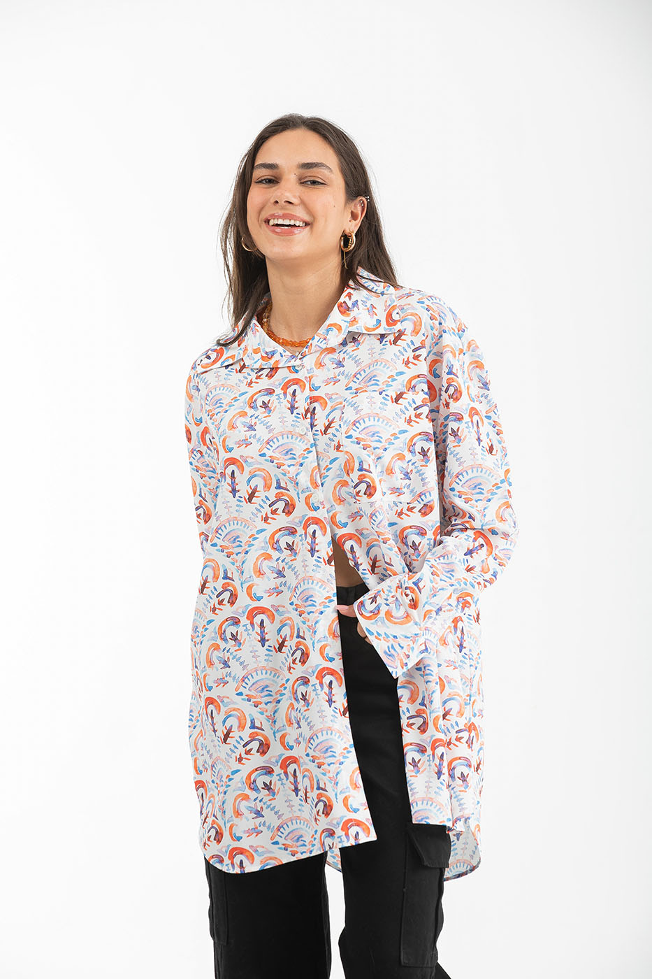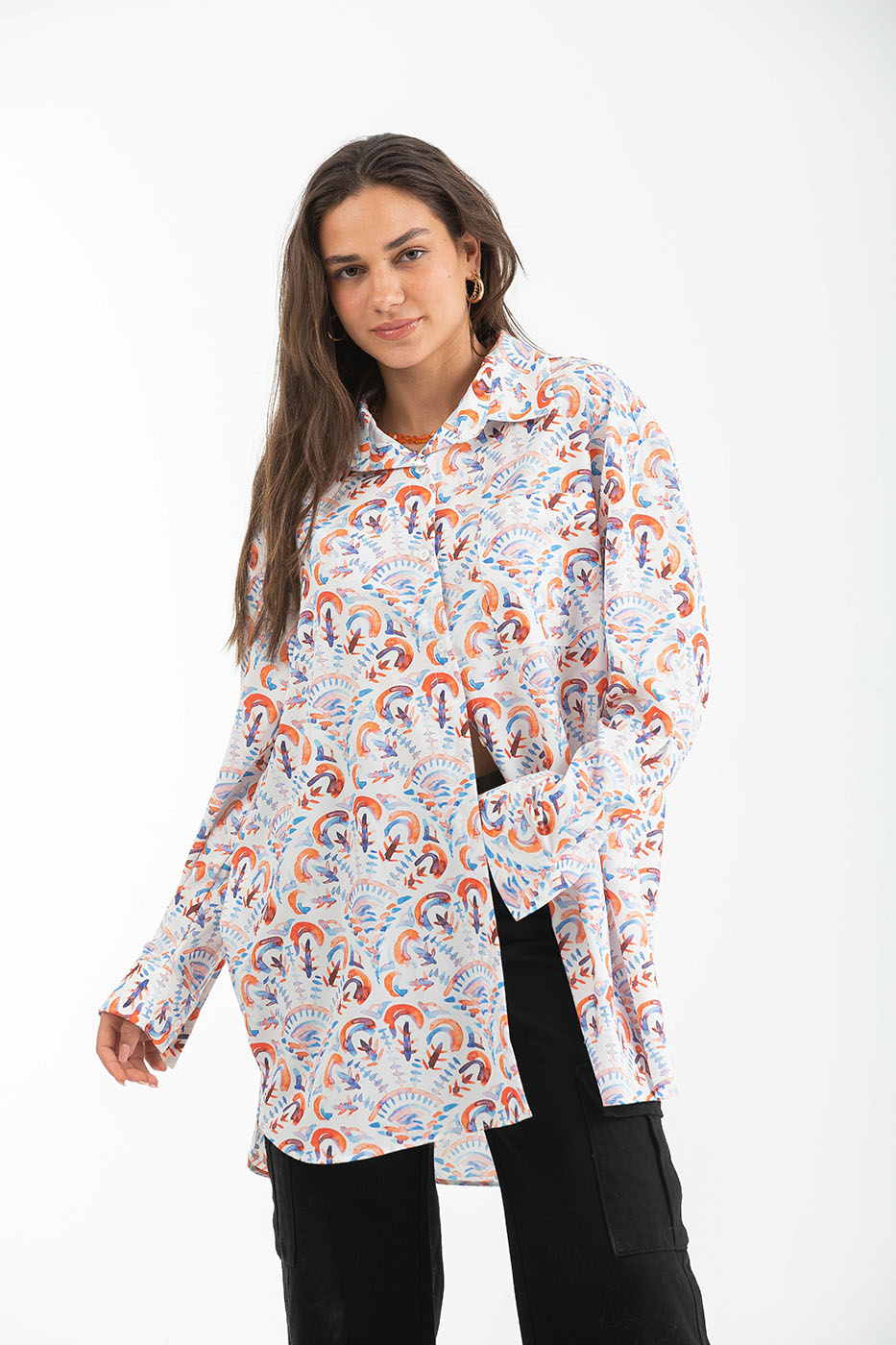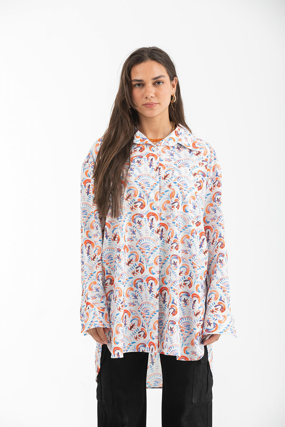 Loose Fit Long Sleeved Floral Shirt