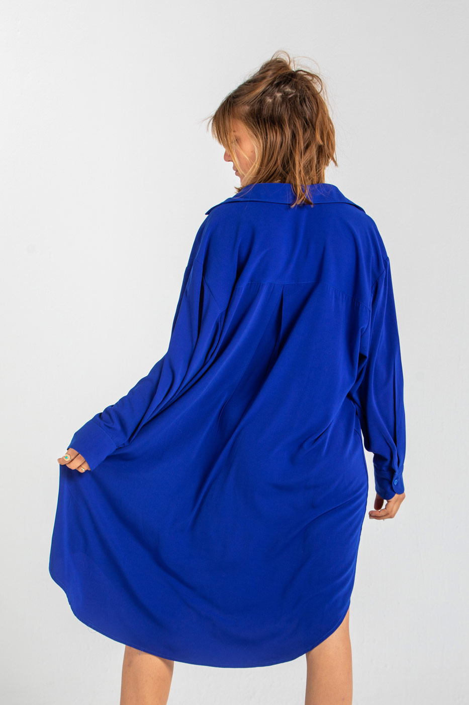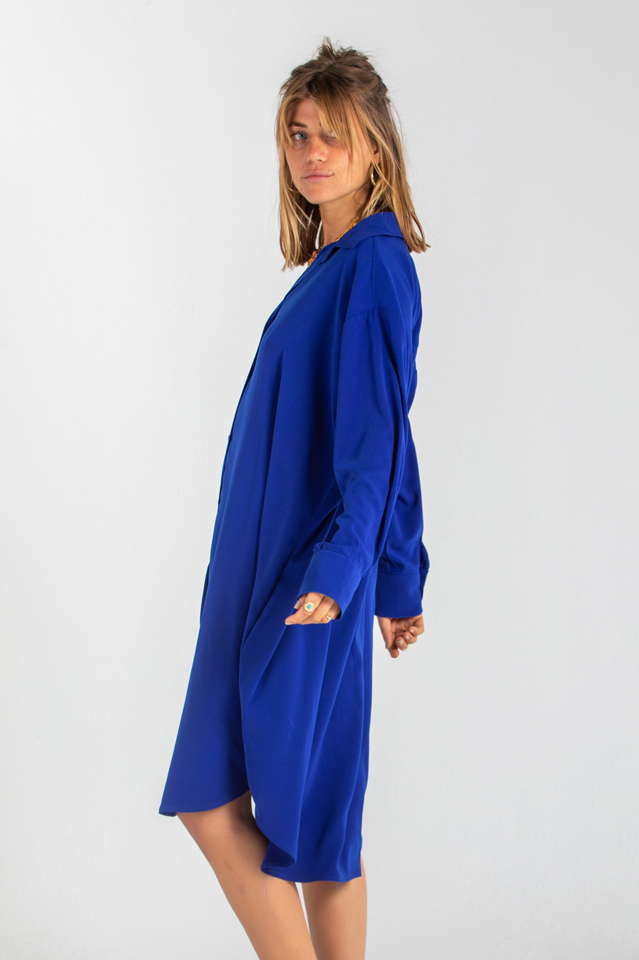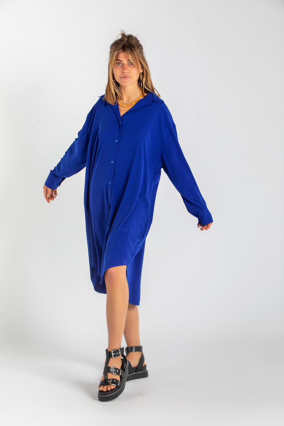 فستان بتصميم قميص مع أكمام طويلة و أزرار أمامية.