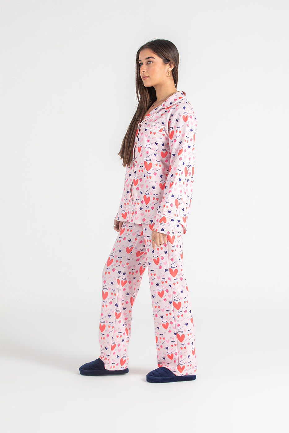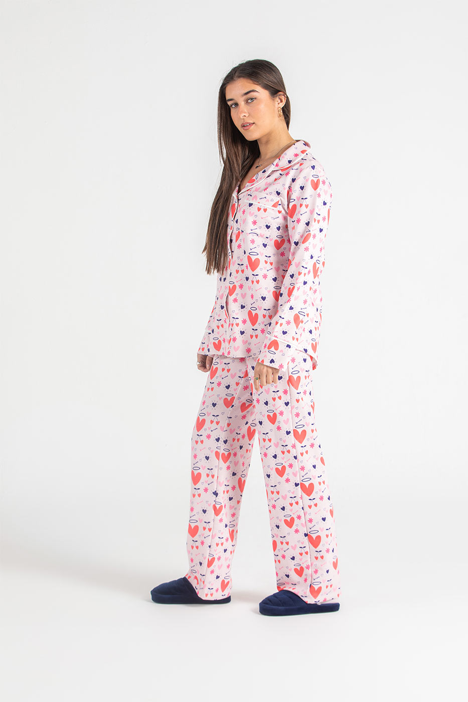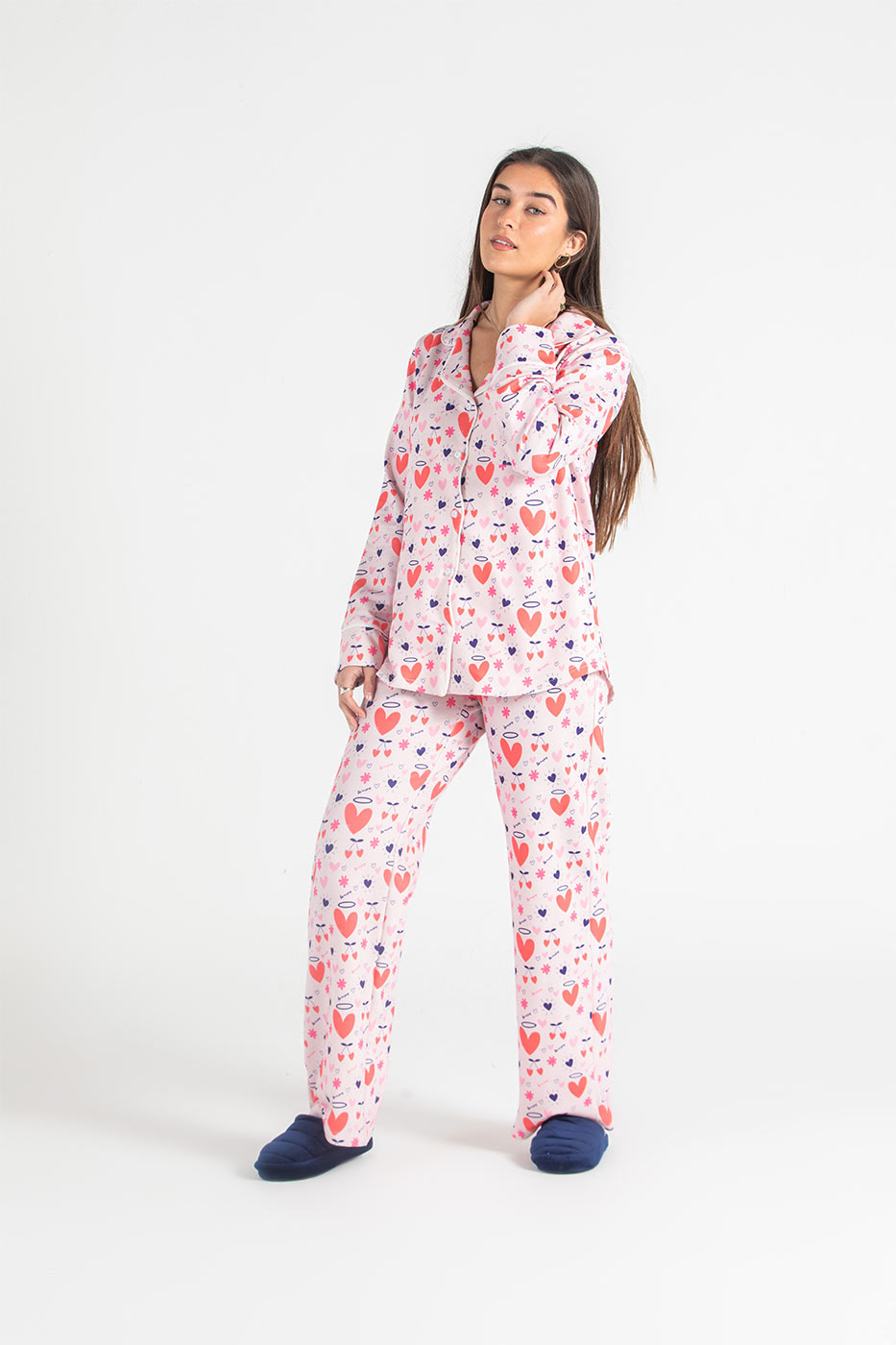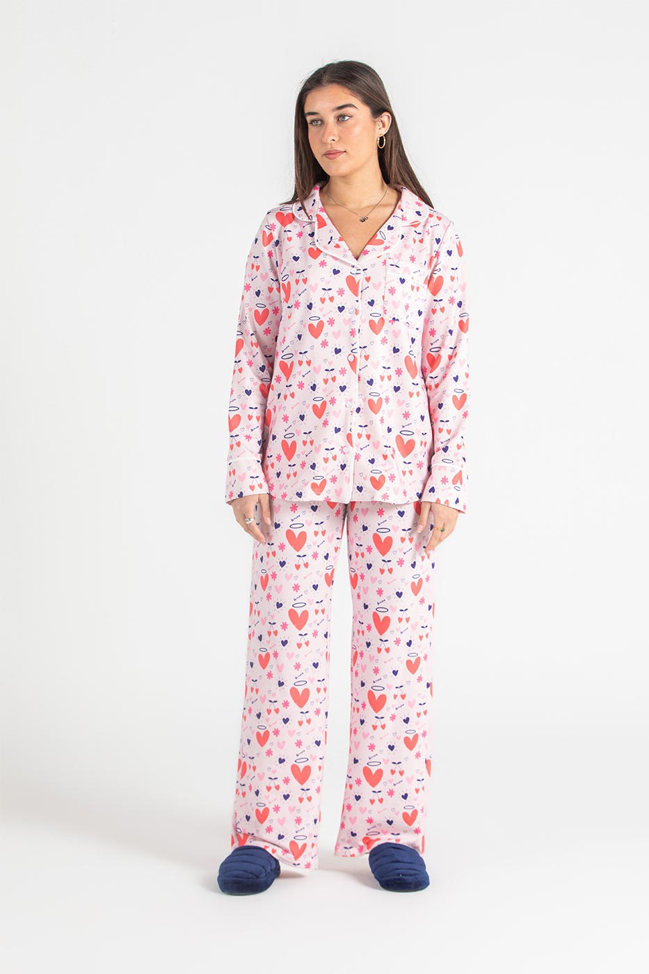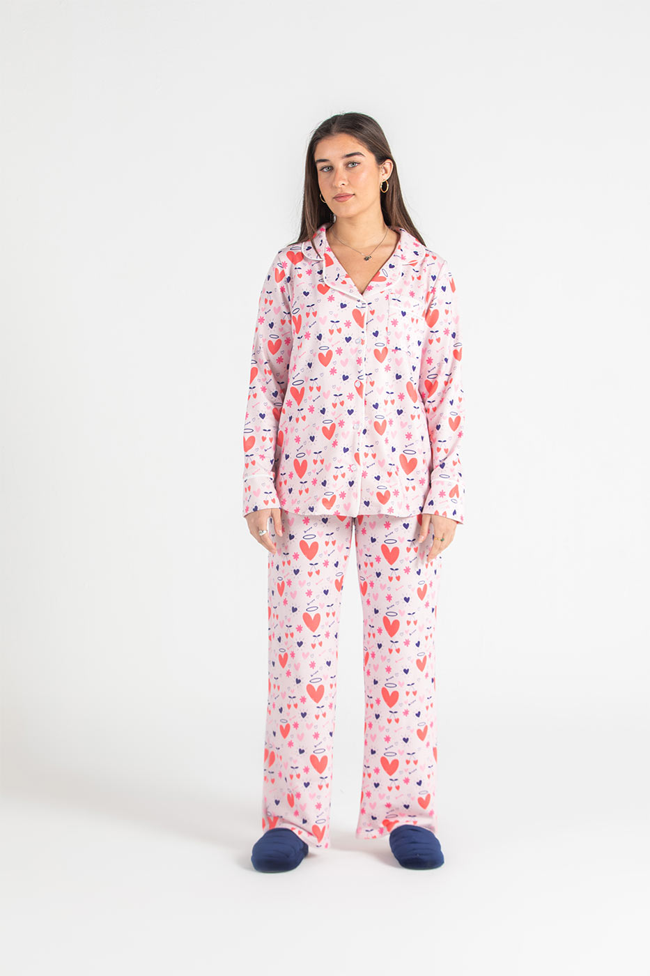 This set comes in two pieces: A cozy poly cotton button through shirt with a collar, chest pocket and a curved hem. A straight cut bottoms with an elasticated waist.Size Details