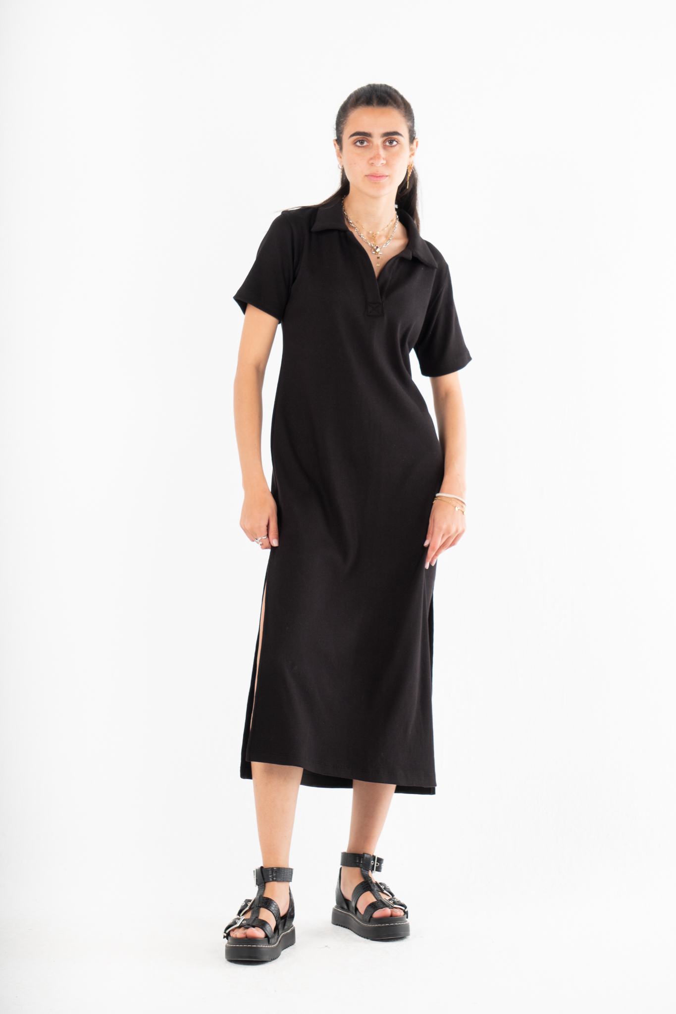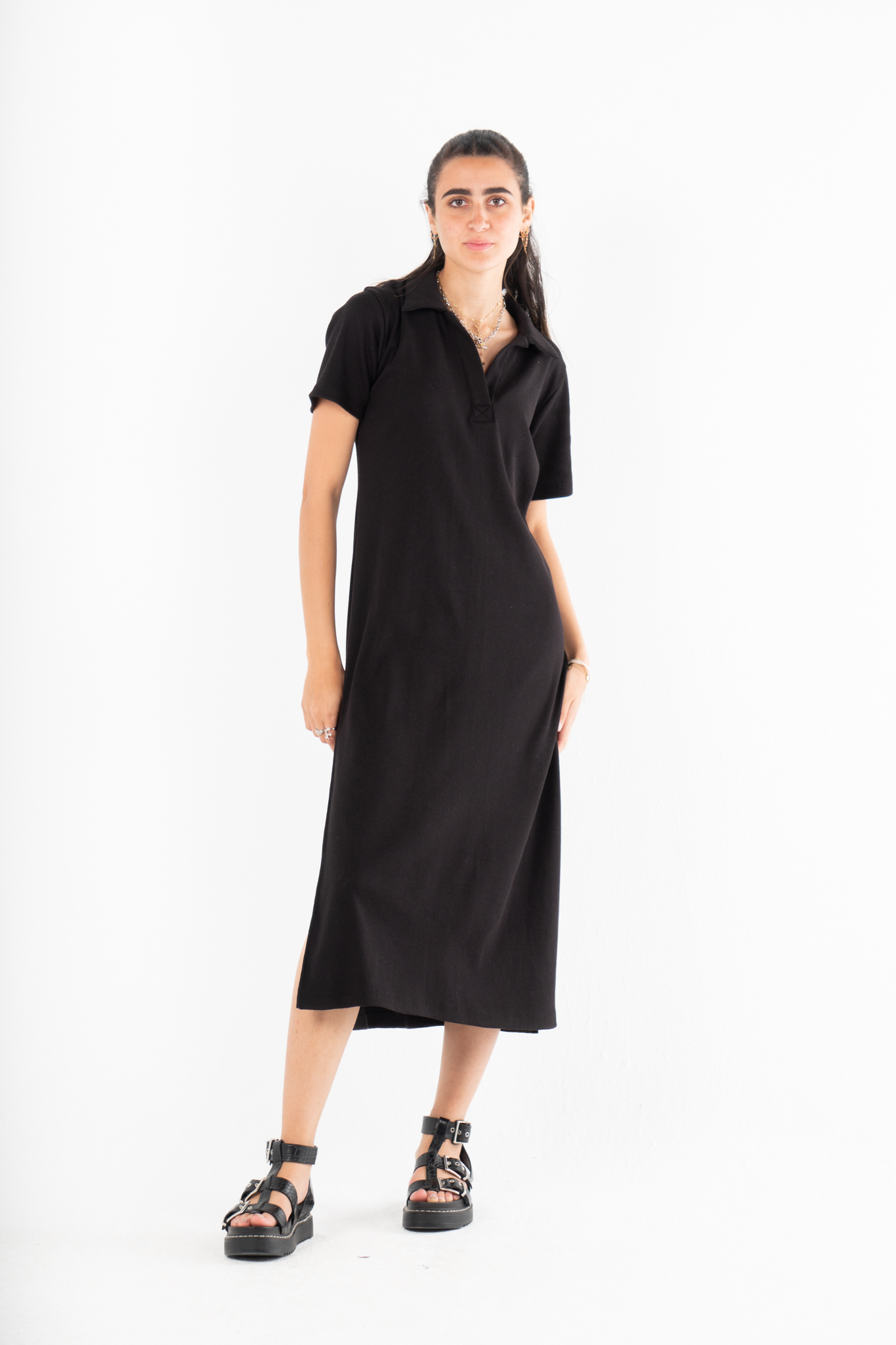 Maxi Collar Dress In BlackSize Details