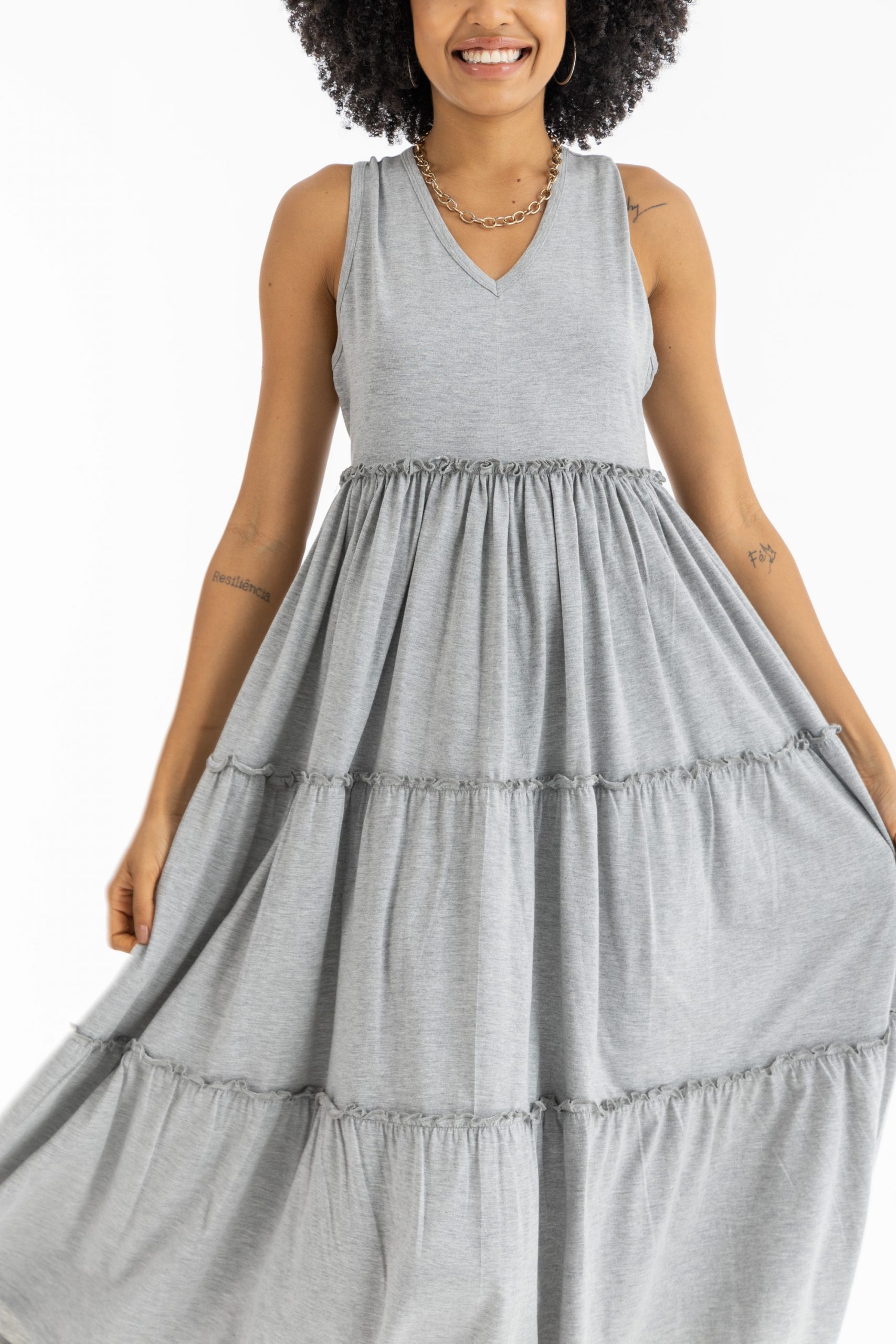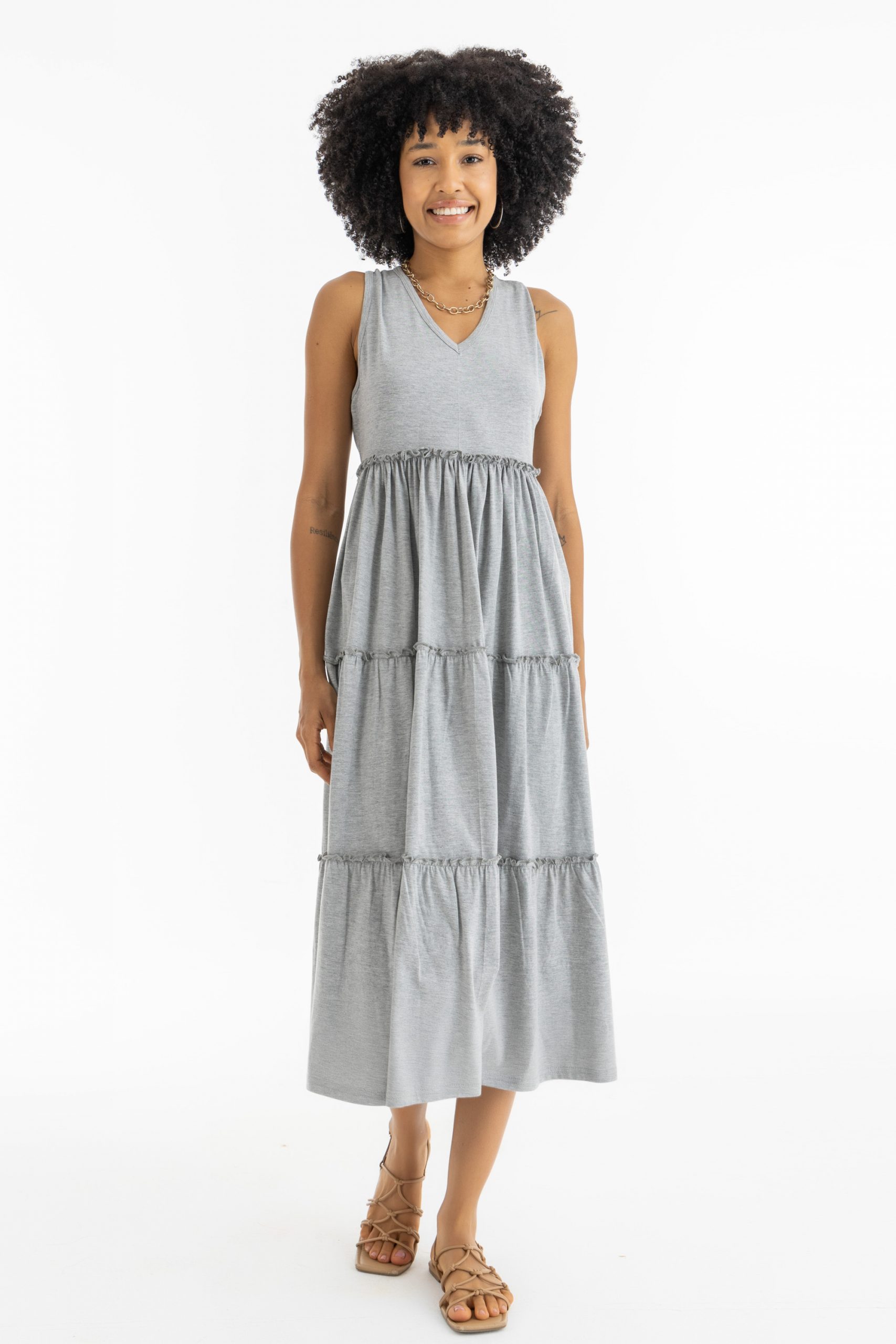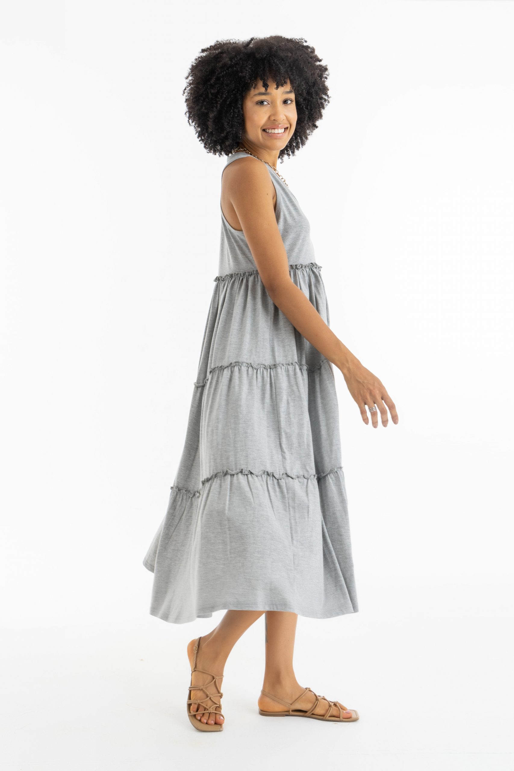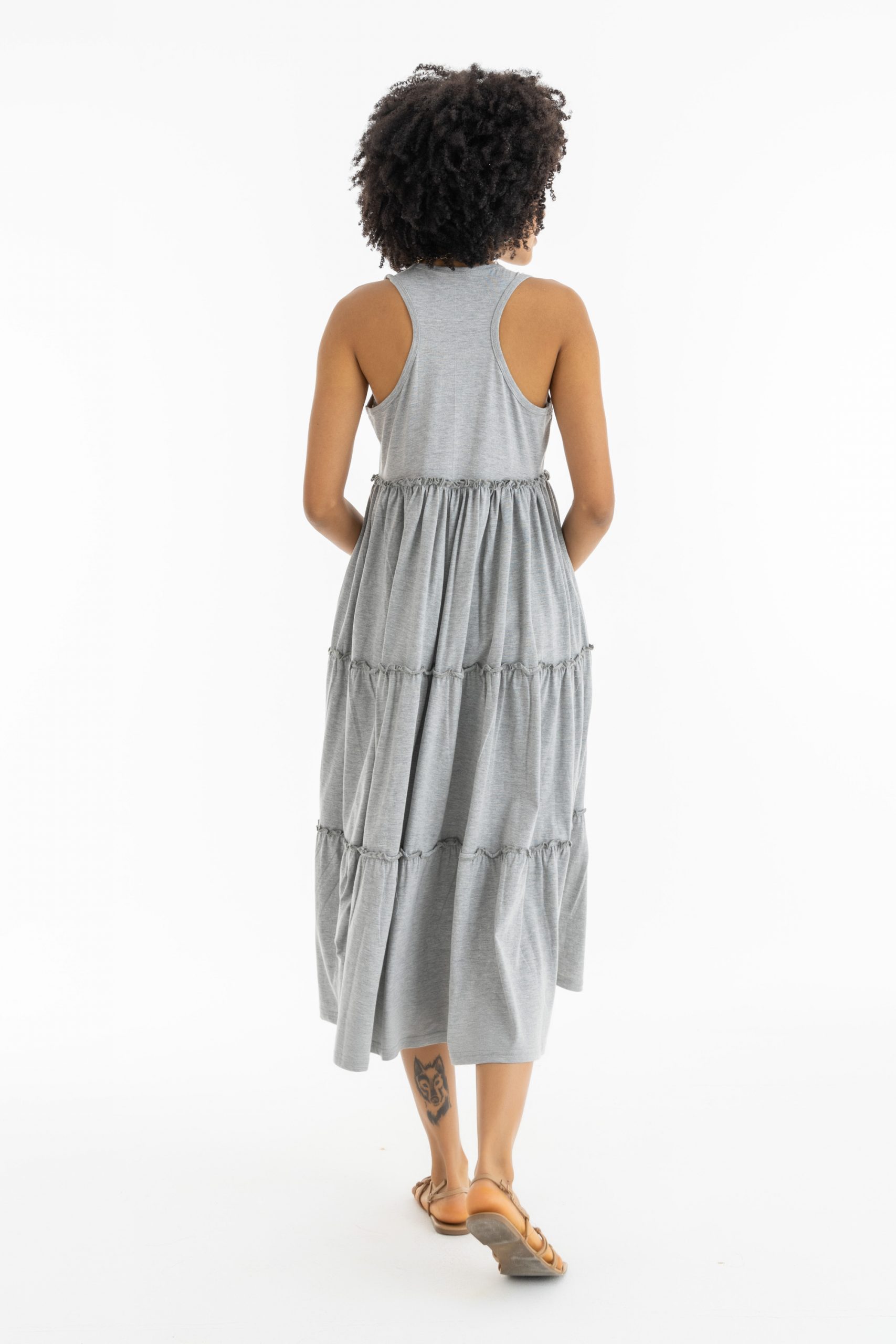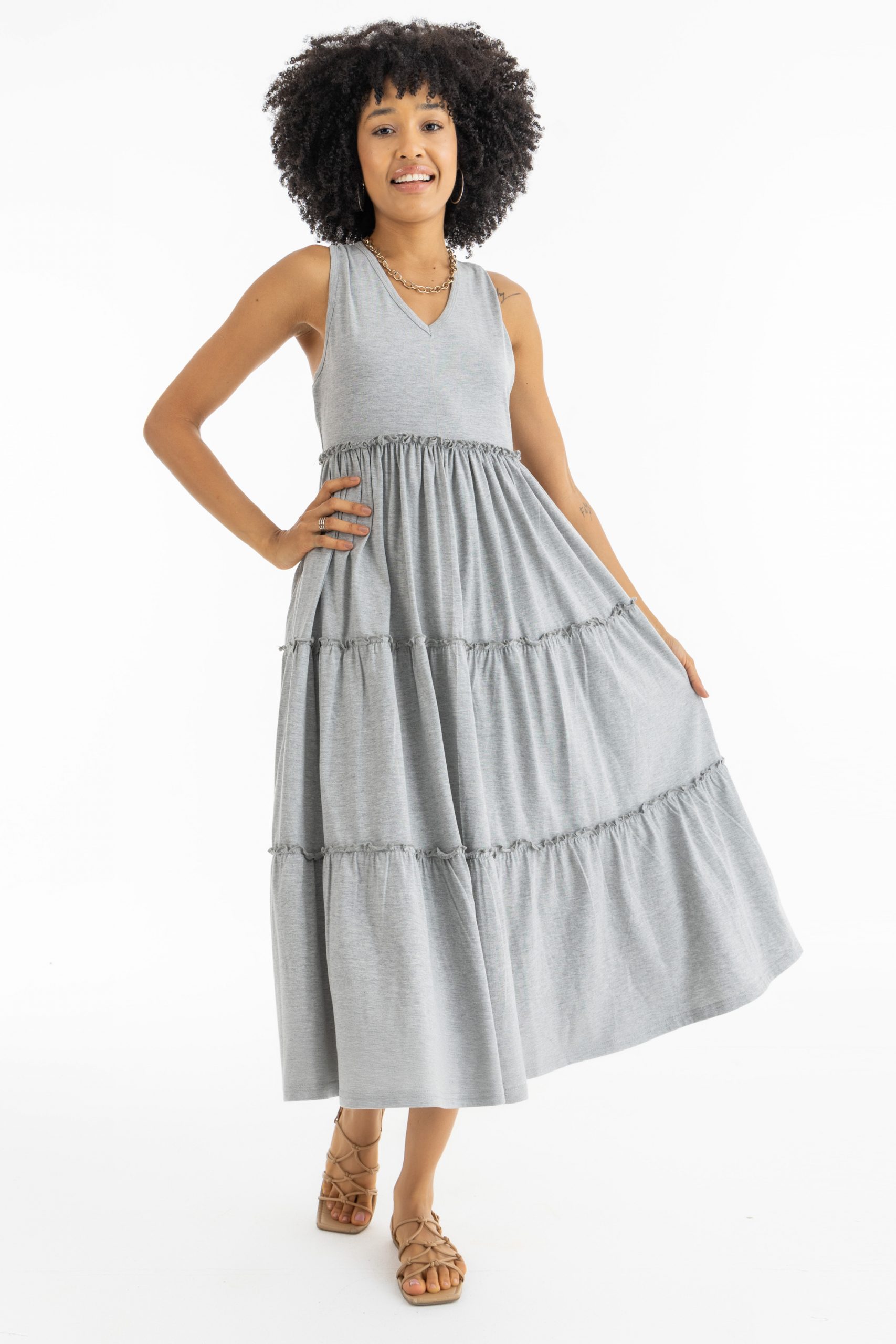 Maxi Ruffle Him Dress In Grey